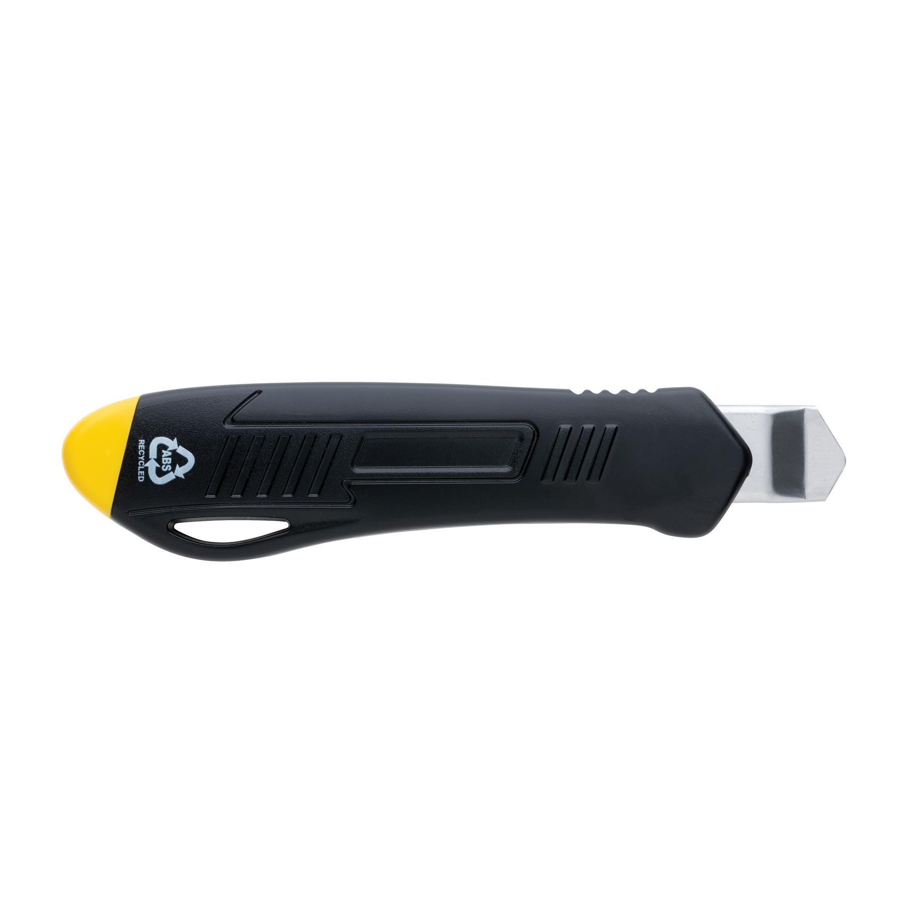 Cutter rechargeable en plastique recyclé certifié RCS (Recycled Claim Standard), composé d'ABS recyclé certifié RCS et d'une lame en acier inoxydable. Contenu recyclé total : 36% sur la base du poids total de l'article. La certification RCS garantit une chaîne d'approvisionnement entièrement certifiée pour les matériaux recyclés. Ce couteau polyvalent est doté d'une lame à casser, ce qui vous permet de remplacer facilement la lame SK4 . Que vous ayez besoin de couper du carton, du plastique ou même de fines feuilles de métal, le couteau à déclic est à la hauteur de la tâche. La lame tranchante et durable garantit des coupes nettes et précises à chaque fois. La poignée confortable offre une bonne prise en main, ce qui vous permet de garder un contrôle total pendant que vous coupez. Emballage en kraft FSC® mix. L'article est livré avec une lame à l'intérieur de l'article et deux supplémentaires.