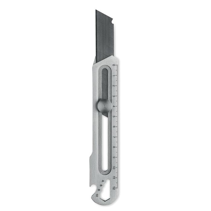 Cutteur en acier inoxydable avec 8 lames en acier carbone, décapsuleur, clé à molette et règle.