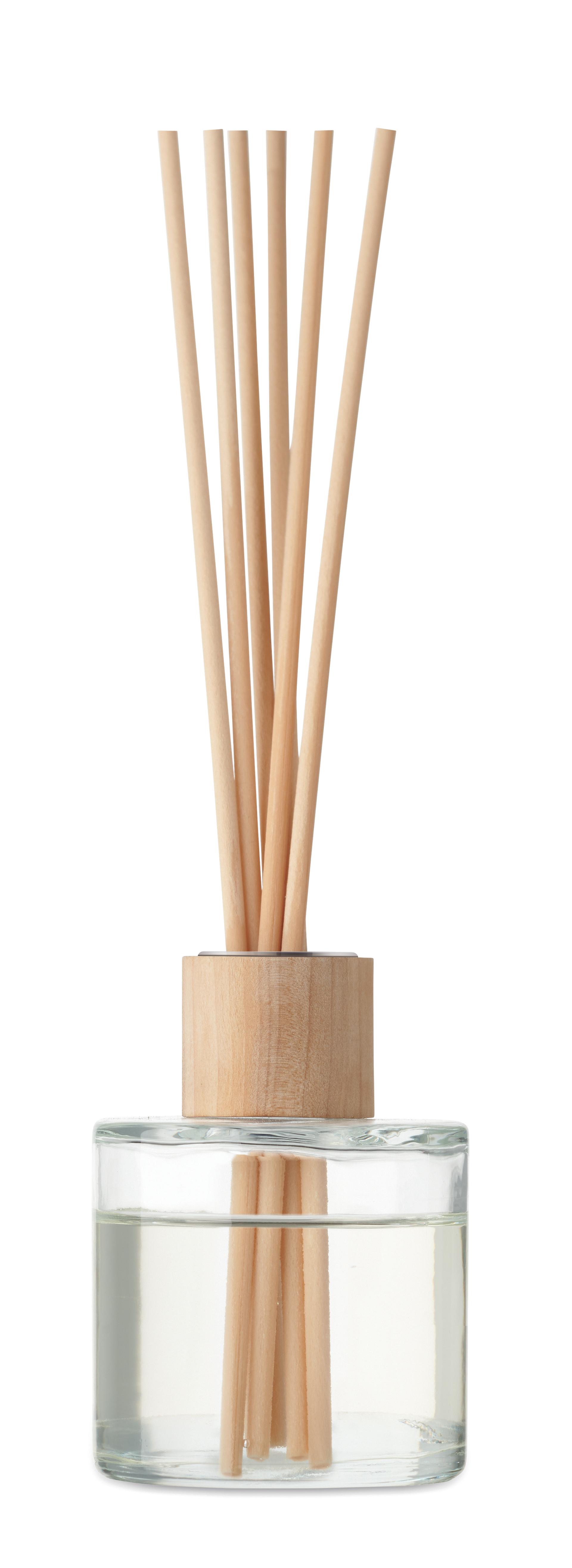 Diffuseur de parfum avec 6 bâtonnets en bois. Parfum : vanille. Capacité 50ml.