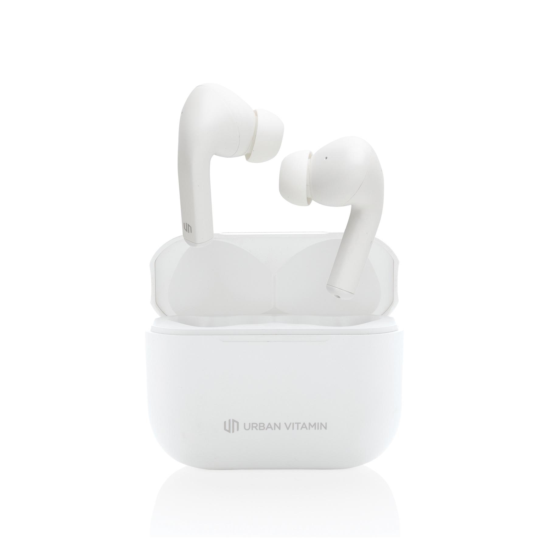 Ecouteurs équipés de l'ANC pour bloquer le bruit extérieur. Lorsque vous voulez entendre les bruits autour de vous il suffit de passer en mode transparence en une touche. Ils ont jusqu'à 5 heures d'autonomie et le boitier de charge jusqu'à 20 heures d'autonomie. Avec fonction micro et fonction tactile pour répondre à un appel ou mettre en pause les écouteurs. L'indice IPX 4 rend les écouteurs résistants aux intempéries et à la transpiration. Degré ANC : Jusqu'à 25DB. Les articles Urban Vitamin sont fabriqués sans PVC et emballés dans des emballages à faible teneur en plastique.