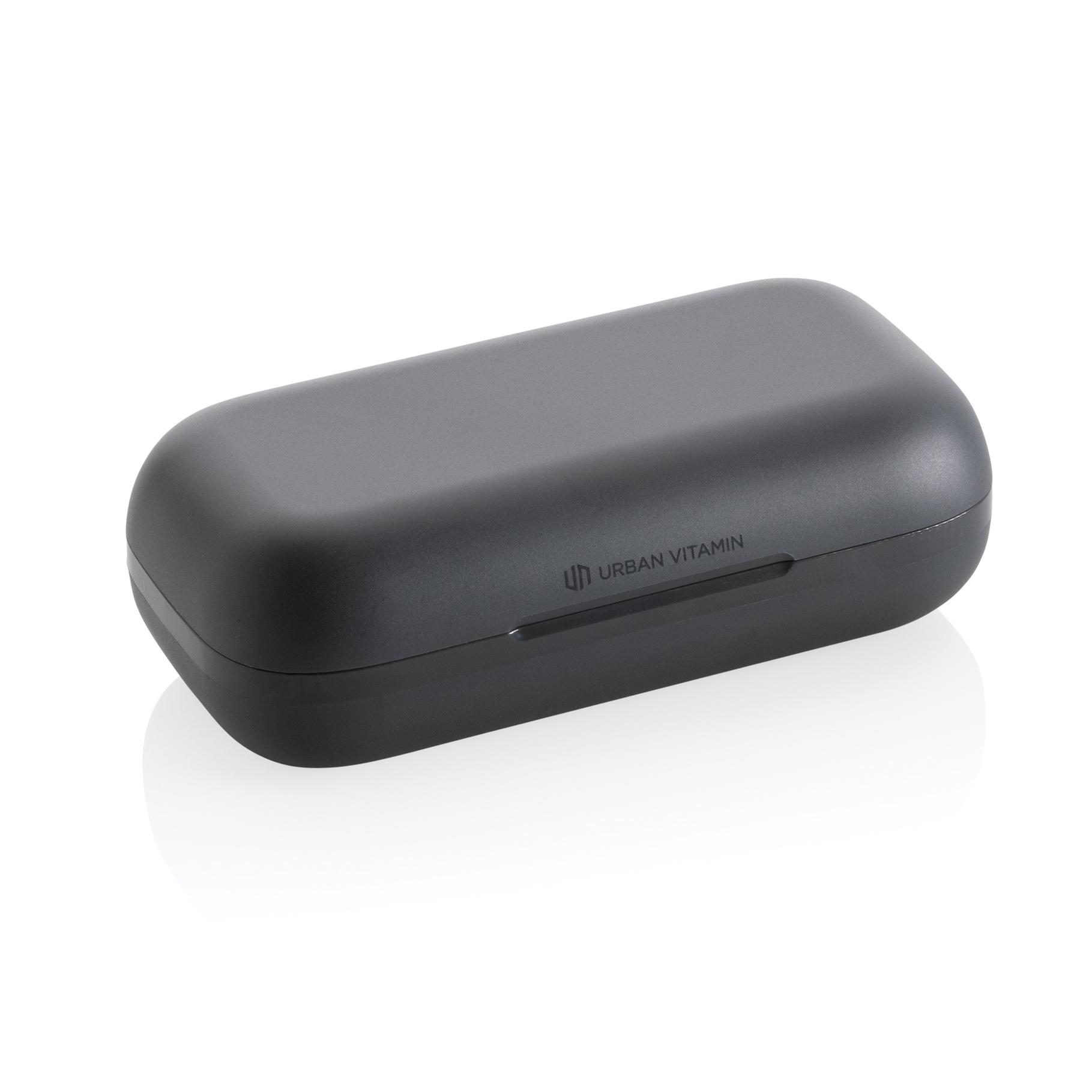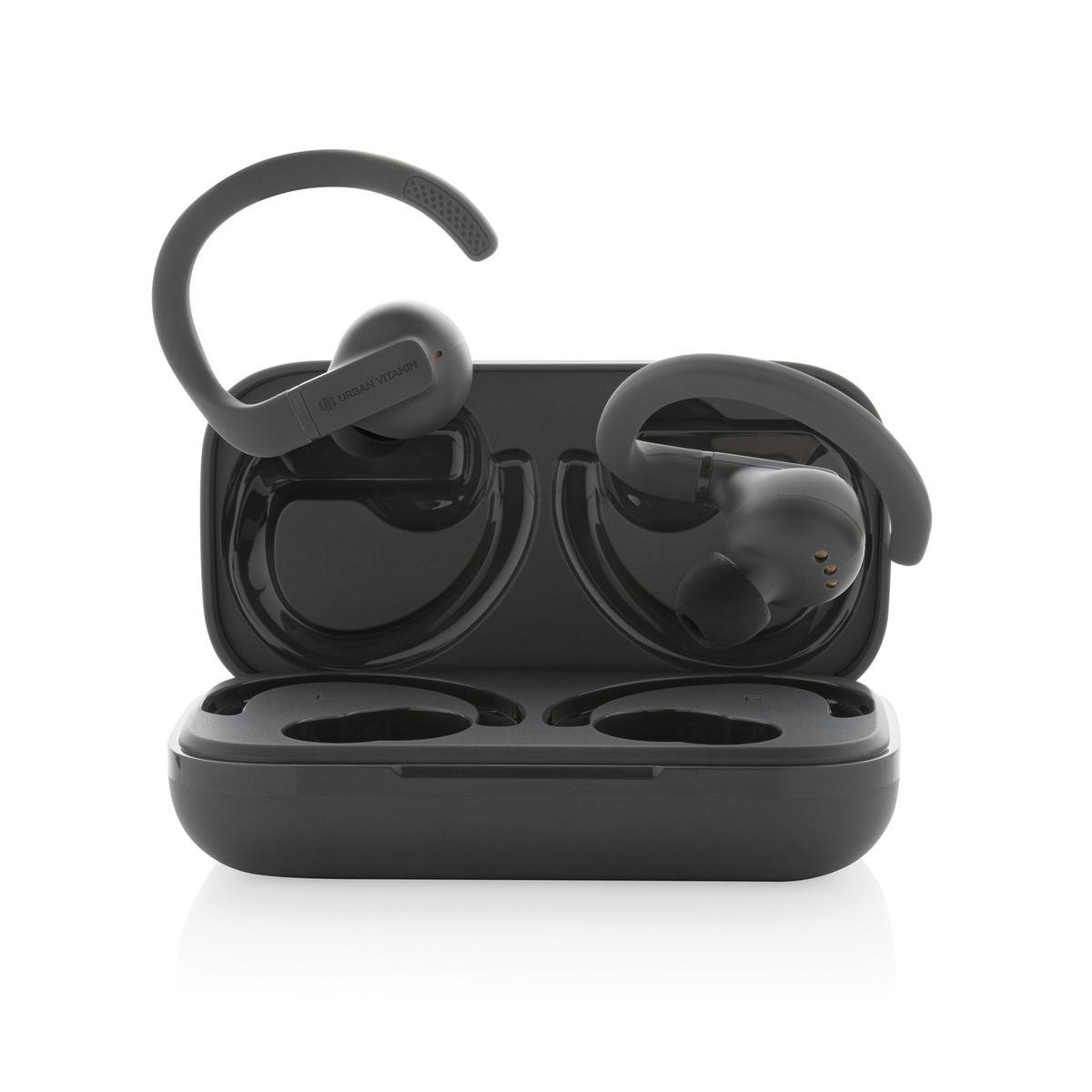 Écouteurs d'entraînement avec crochets d'oreille personnalisables et parfaitement ajustables, plusieurs options d'embouts pour un confort accru. Légers, ils sont conçus pour des performances optimales, avec une conception robuste pour une résistance à la sueur, à la poussière et à l'eau conforme à la norme IPX5. Avec jusqu'à 8 heures d'écoute grâce à la technologie avancée BT 5.3 dans chaque écouteur et un son puissant et équilibré, vous aurez toujours votre musique pour vous motiver. Les écouteurs et l'étui de charge de 600 mAh sont fabriqués avec de l'ABS/TPE recyclé certifié RCS (Recycled Claim Standard). Contenu recyclé total : 55 % sur la base du poids total de l'article. La certification RCS garantit une chaîne d'approvisionnement entièrement certifiée pour les matériaux recyclés. Les oreillettes peuvent être rechargées 3 fois complètement dans l'étui de chargement. Les articles Urban Vitamin sont fabriqués sans PVC et emballés dans des emballages à faible teneur en plastique.