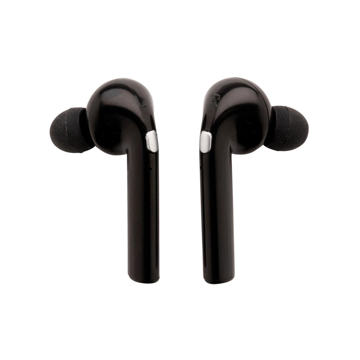 Ecouteurs en ABS avec technologie BT 5.0 pour connexion facile (jusqu’à 10m) et une qualité d’écoute parfaite. Batterie 35 mAh pour 2 heures d’écoute et peut être rechargé en 1 heure dans le boîtier de charge. Livré dans un étui de recharge de 400 mAh et des embouts de différentes tailles.