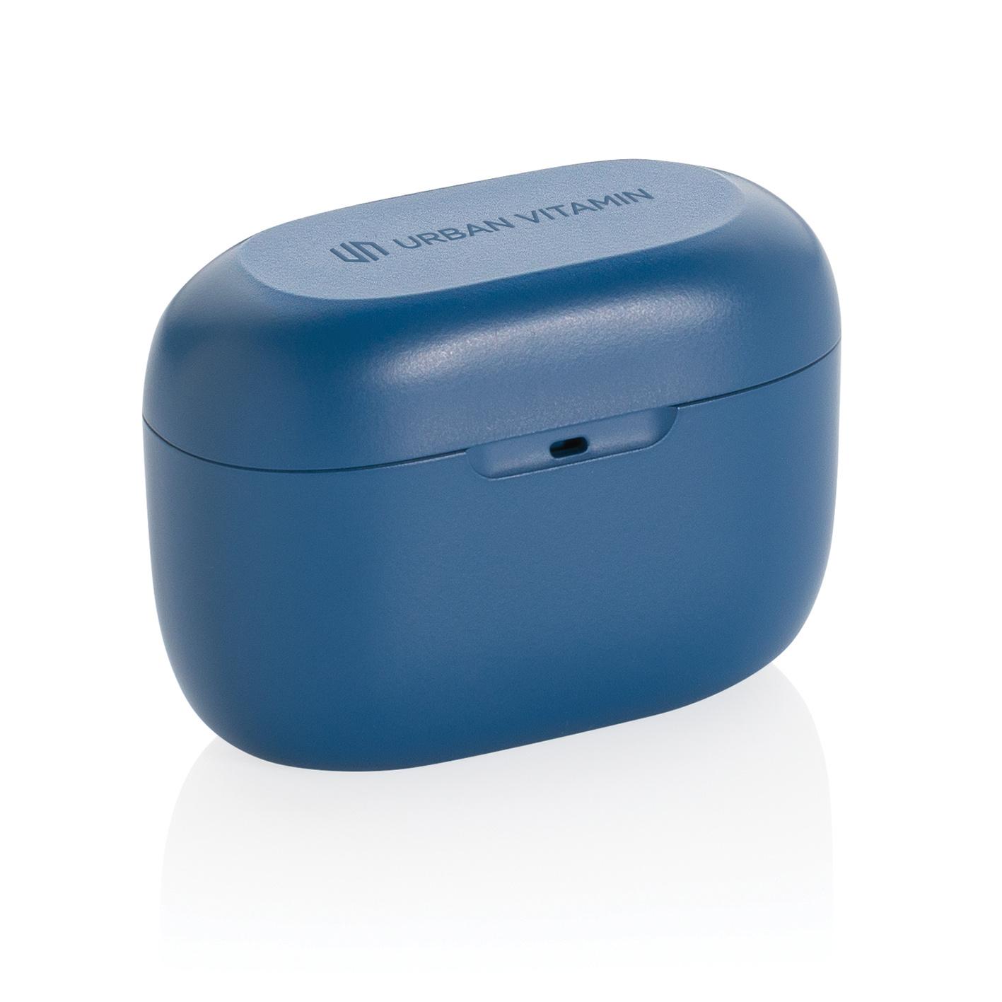 Ecouteurs et boitier de charge conçus pour être transporter facilement. Très comfortables à porter et avec jusqu'à 5 heures d'autonomie, le boitier de charge permet jusqu'à 20 heures d'autonomie. 2 micros et commande tactile intégrés, il vous suffit d'appuyer sur l'oreillette pour répondre aux appels. L'indice IPX 5 rend les écouteurs résistants aux intempéries et à la transpiration. Les articles Urban Vitamin sont fabriqués sans PVC et emballés dans des emballages à faible teneur en plastique.