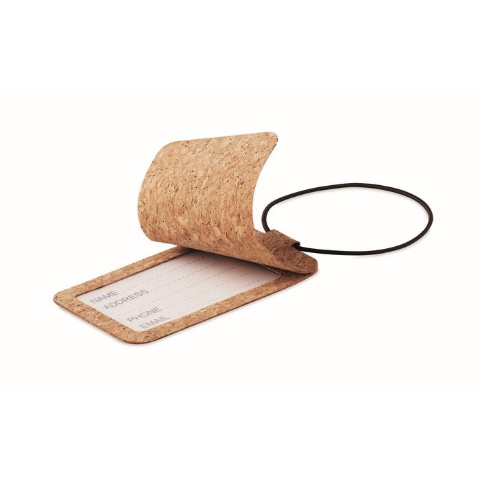 Étiquette à bagage en liège. Le liège est un matériau 100% naturel. En raison de sa structure et de la porosité de sa surface, le résultat final de l'impression par article peut présenter des différences.