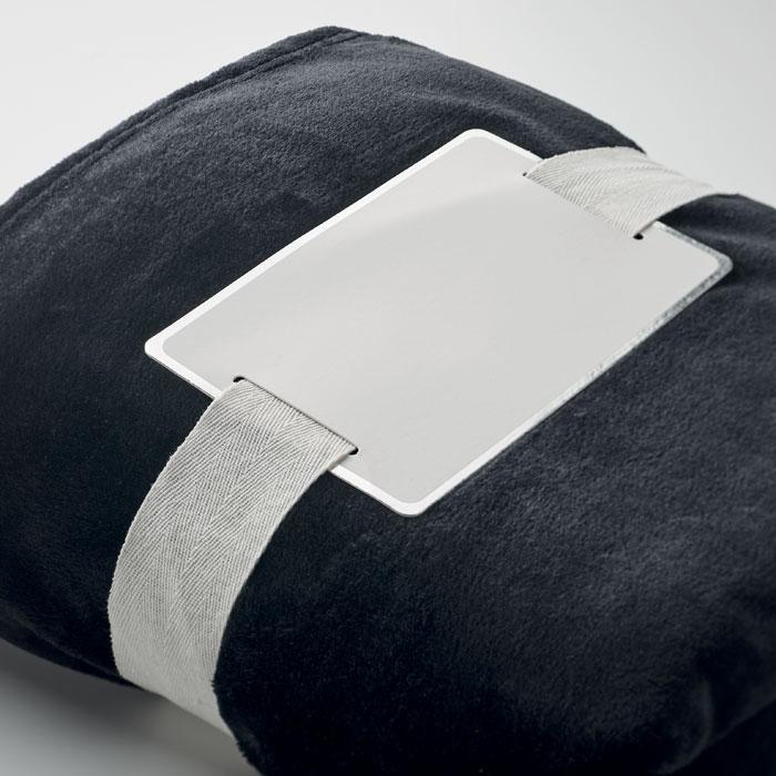 Couverture en polaire 280 gr/m² enveloppée dans un ruban et carte imprimable.