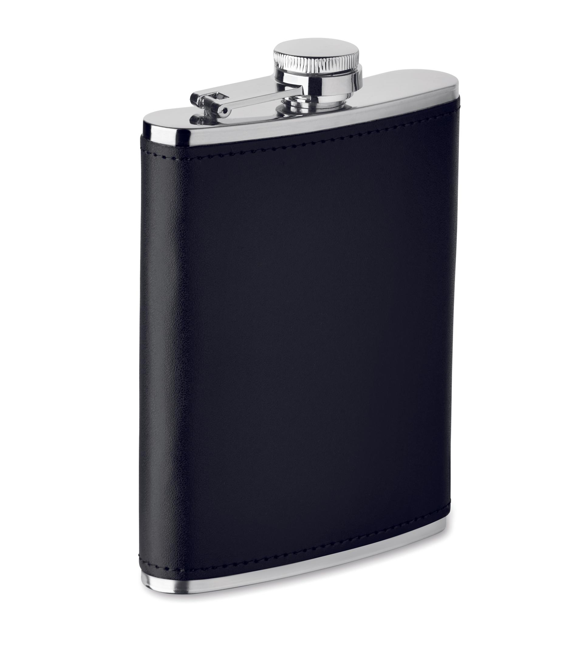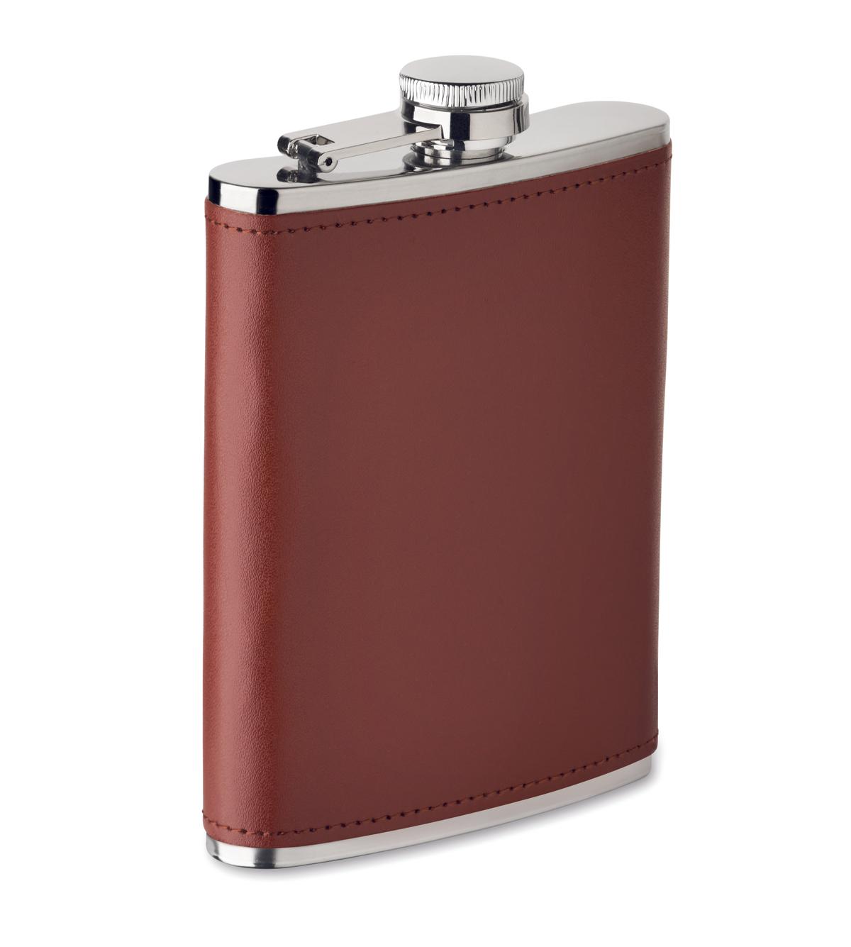 Flasque en acier inoxydable avec couvercle en cuir PU. capacité de 200 ml.