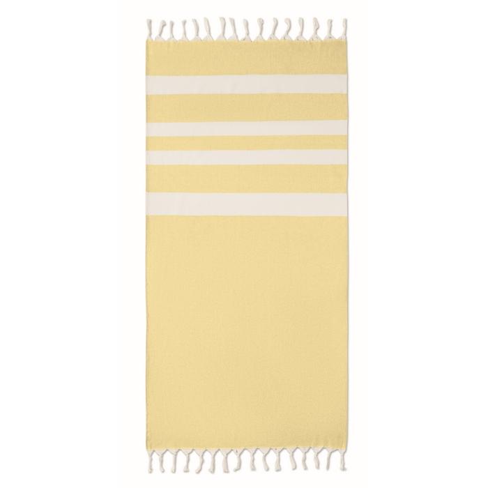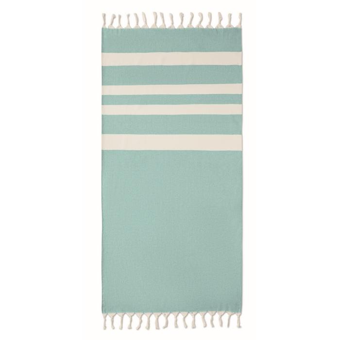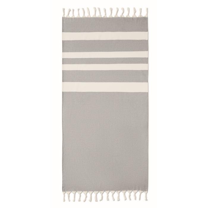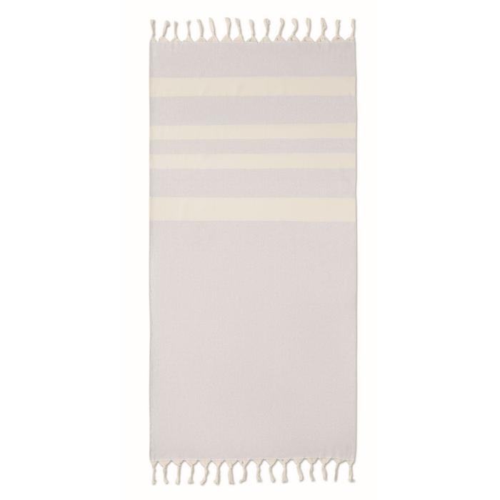 Fouta en tissus recyclés: coton recyclé (45%) et polyester recyclé (55%). 140 gr/m².