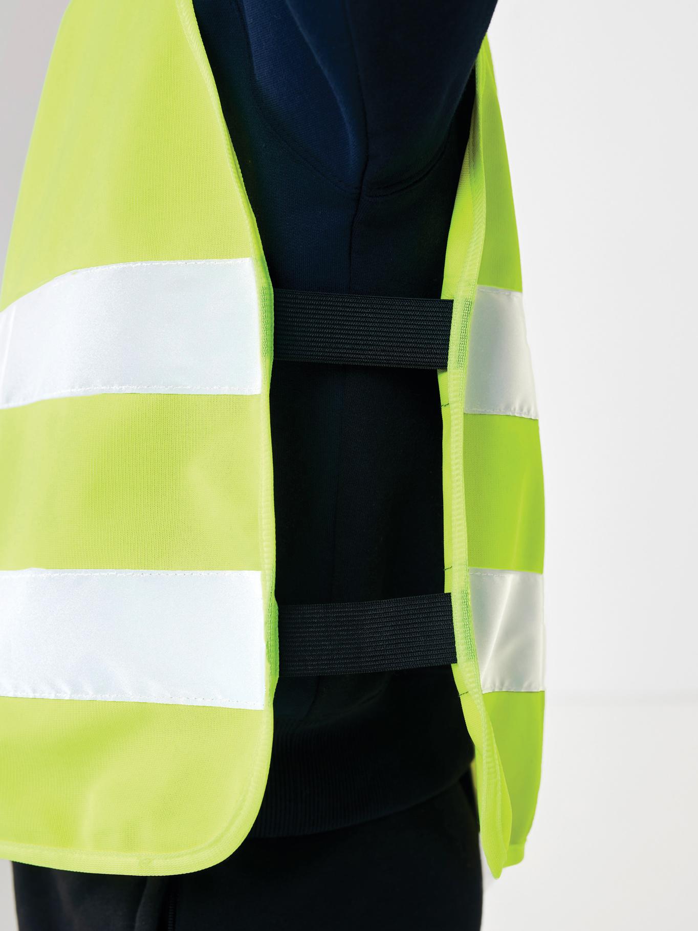 Gilet haute visibilité de signalisation taille S, conçu pour les enfants âgés de 7 à 12 ans, d'une taille comprise entre 90 et 155 cm. Ce gilet comporte un espace de marquage sur les faces avant et arrière. Il est équipé de fermetures auto-agrippantes sur les épaules et à la base pour plus de sécurité et un enfilage facile. Les bandes élastiques sur le côté opposé offrent une certaine souplesse, ce qui permet de le porter confortablement par-dessus des manteaux épais. Ce gilet a fait l'objet de tests rigoureux et est conforme à la norme EN 17353:2020 Type AB3. En outre, il adhère aux directives EPI spécifiées dans le règlement (UE) 2016/425 pour les équipements de protection individuelle de catégorie II. Fabriqué avec du PET recyclé certifié GRS. Contenu recyclé total : 58 % sur la base du poids total de l'article. La certification GRS garantit une chaîne d'approvisionnement entièrement certifiée pour les matériaux recyclés.