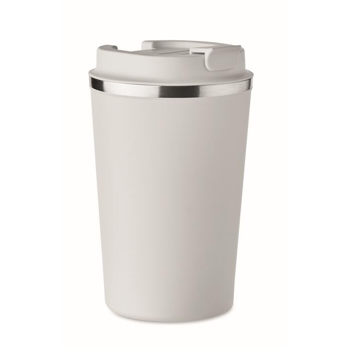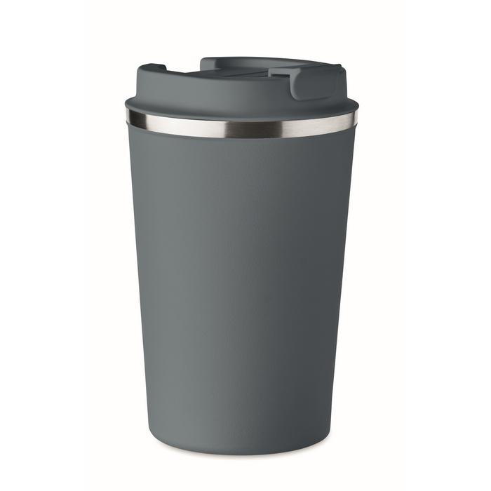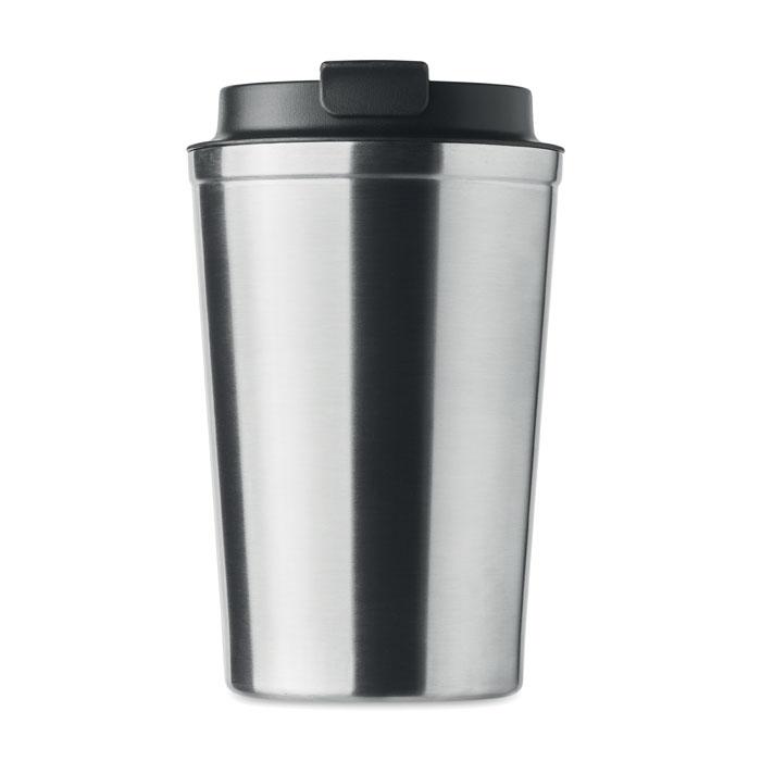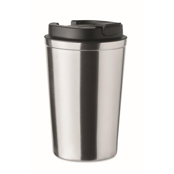 Gobelet en acier inoxydable à double paroi avec couvercle en PP. Contenance 350 ml. Sans fuite.