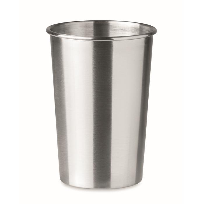 Gobelet en acier inoxydable. Capacité : 350 ml. La simple paroi n’empêche pas le transfert de chaleur.