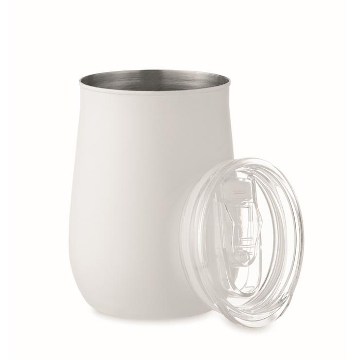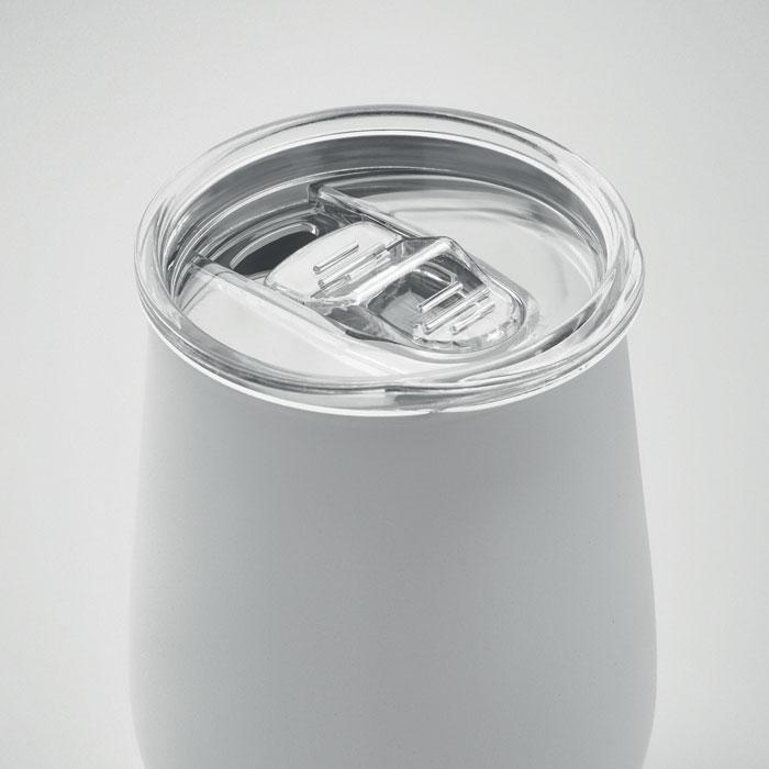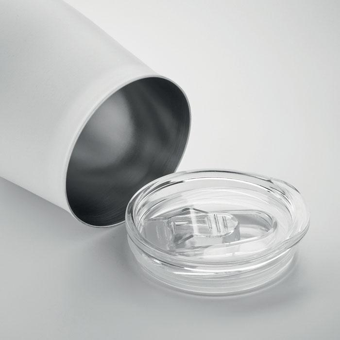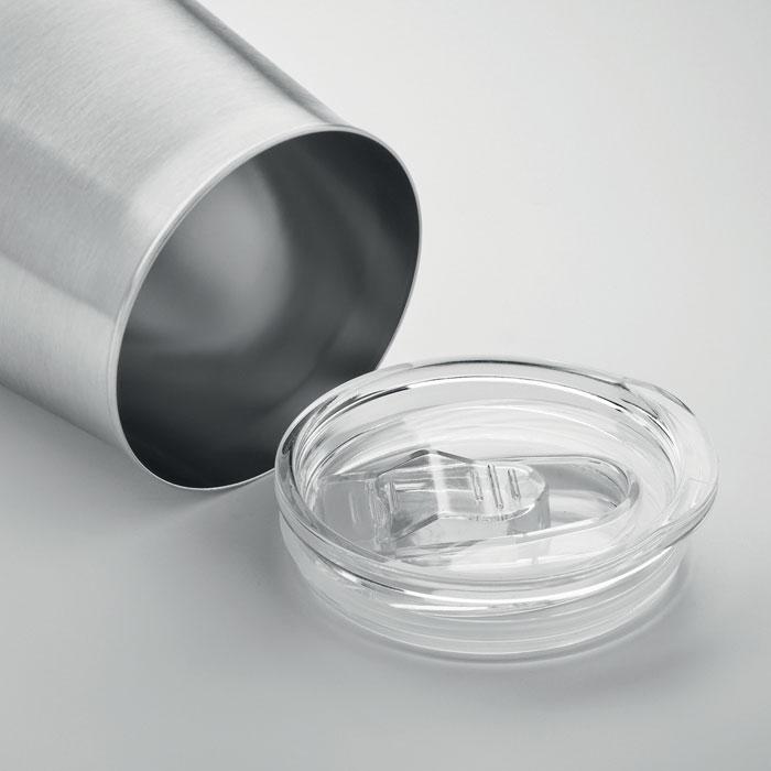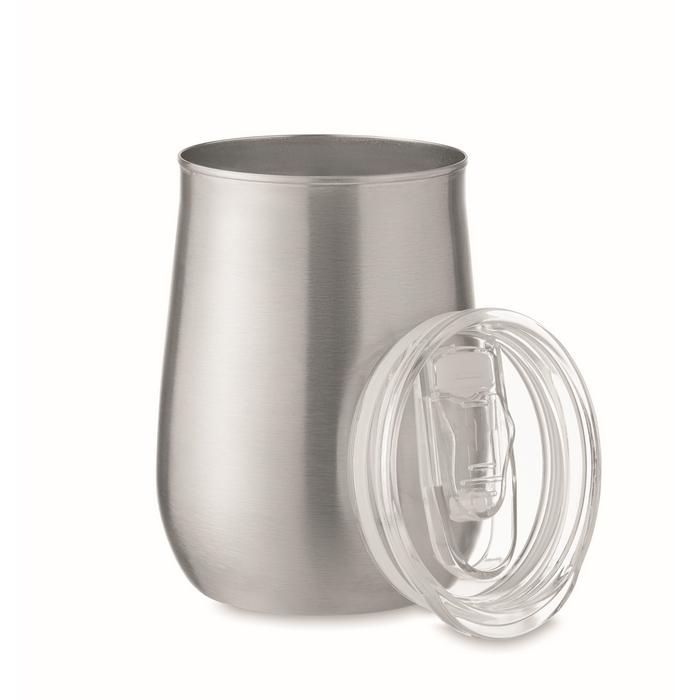 Gobelet en acier inoxydable recyclé (90 % d'acier inoxydable recyclé et 10 % d'acier inoxydable) avec couvercle à curseur coulissant. Capacité : 500 ml. La simple paroi n’empêche pas le transfert de chaleur.