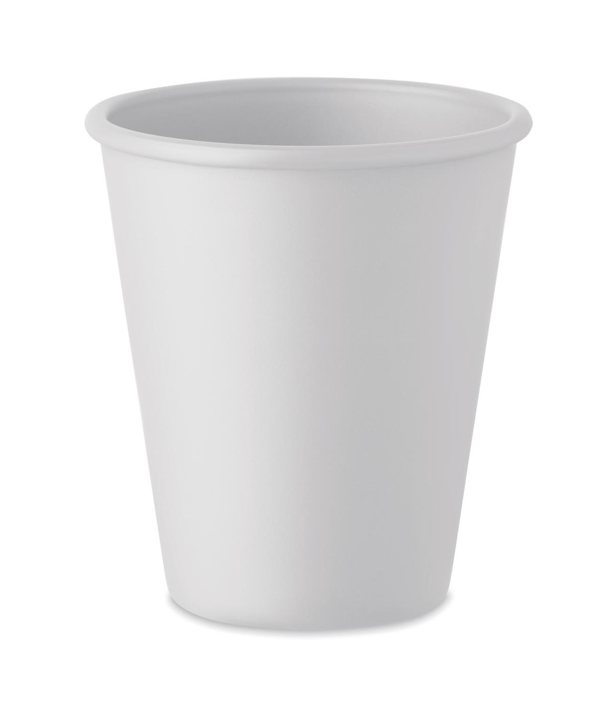 Gobelet réutilisable à simple paroi en PLA de maïs. Comme il s'agit d'un gobelet à simple paroi, un transfert de chaleur peut se produire. Capacité 200 ml.