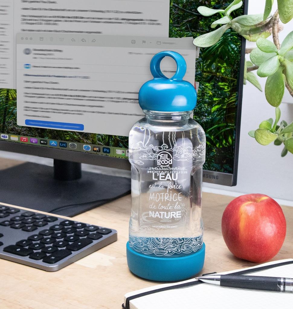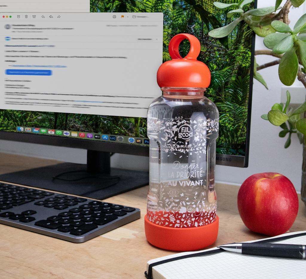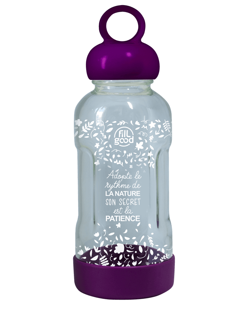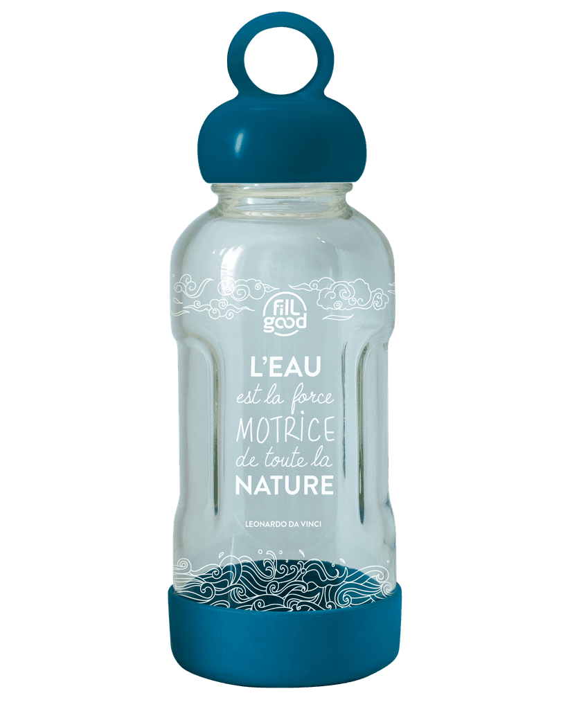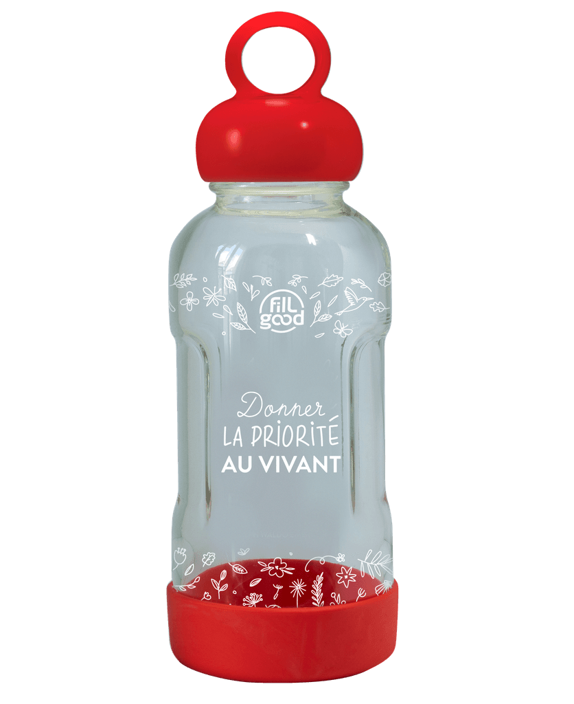 Gourde en verre borosilicate, durable et résistante aux chocs thermiques (-20°C à 220°C).