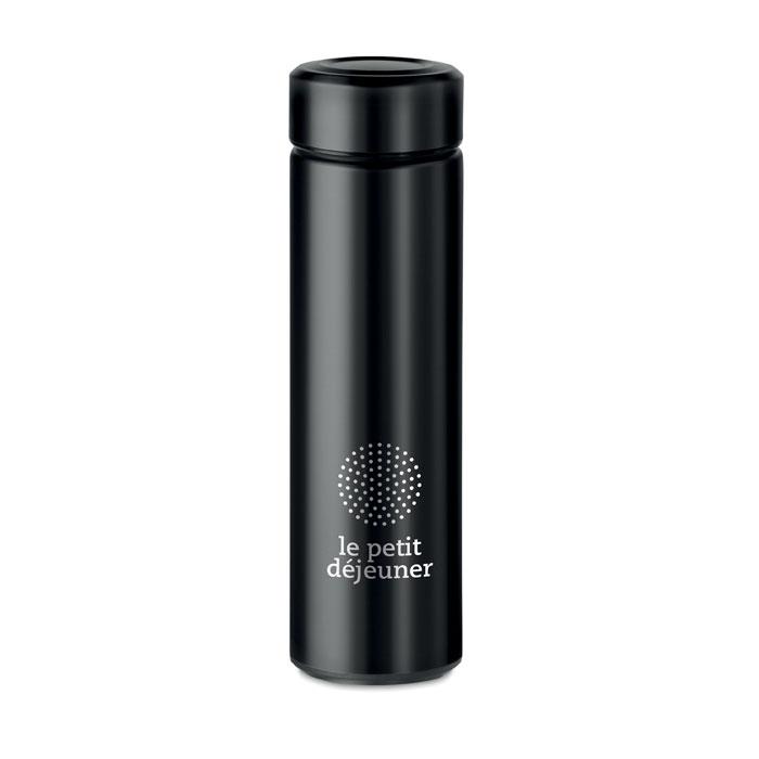 Gourde à vide isolant en acier inoxydable à double paroi avec infuseur de thé supplémentaire. Contenance 425 ml. Anti fuite.