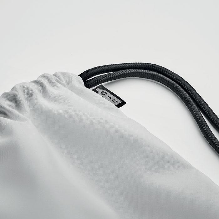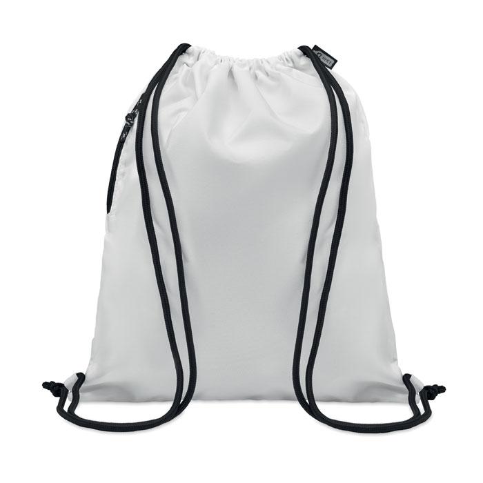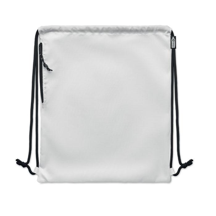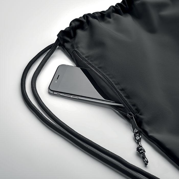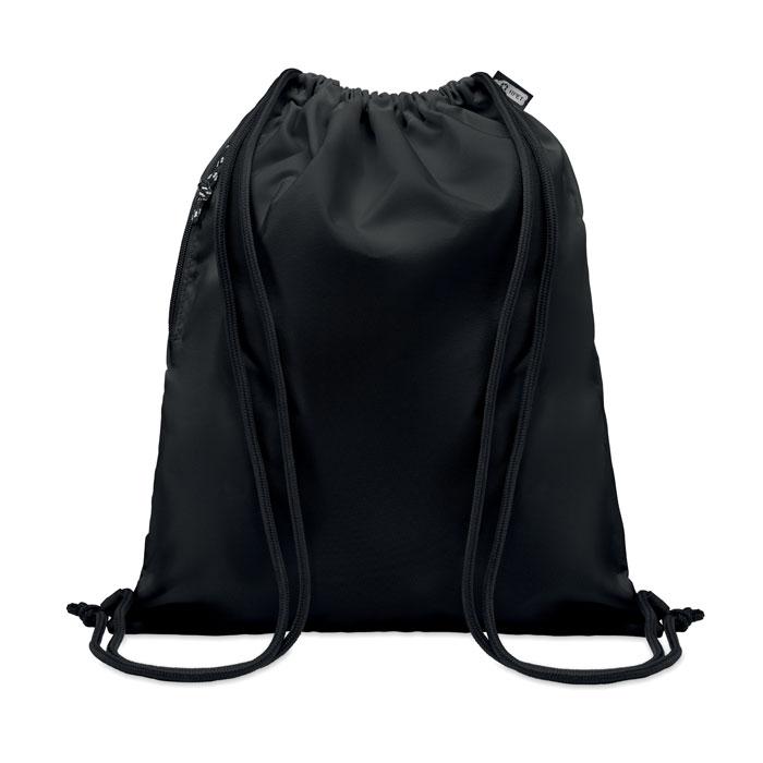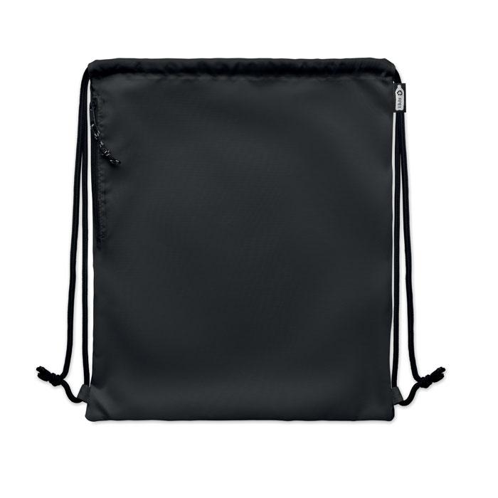 Grand sac cordon en polyester 300D RPET avec poche extérieure latérale zippé. Cordons épais.
