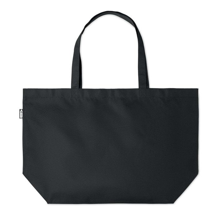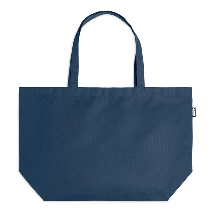 Grand sac shopping ou sac de plage à anses longues en RPET 600D avec soufflet sur le fond.