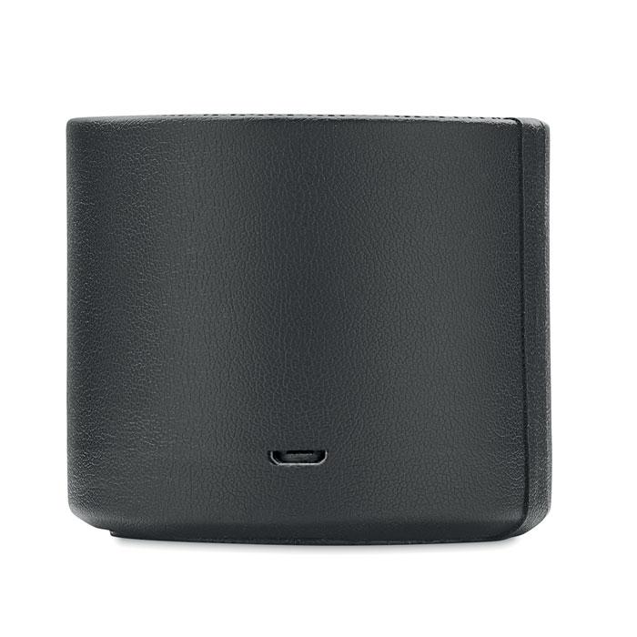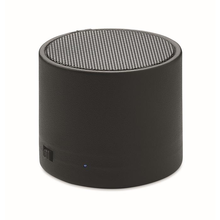 Haut-parleur sans fil 5.0 avec boîtier en ABS et PU recyclé à 58 % (40 % de polyester recyclé et 18 % de PU recyclé) et témoin lumineux LED. Sortie : 3W, 3 Ohm et 5V. Durée d'écoute : environ 3 heures.