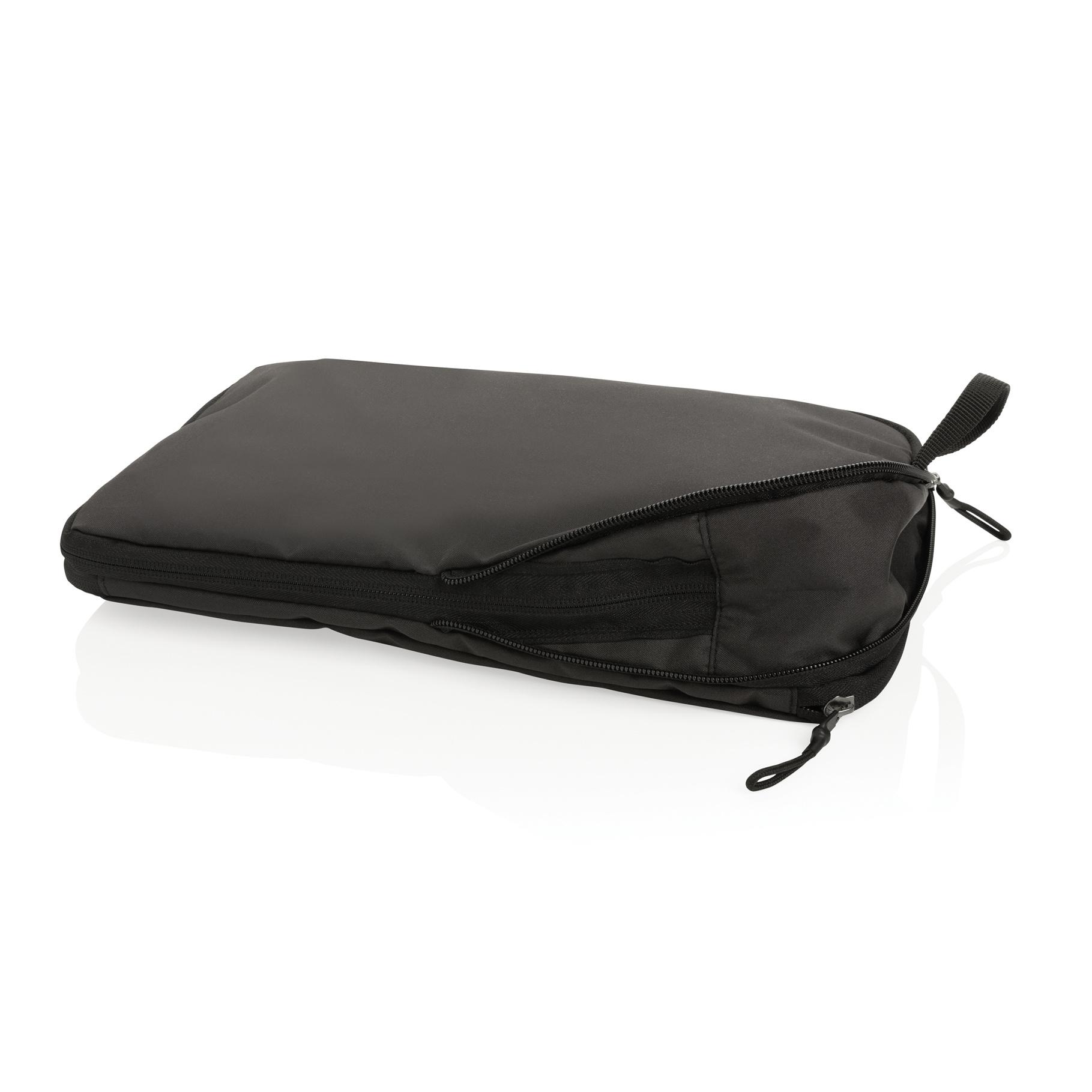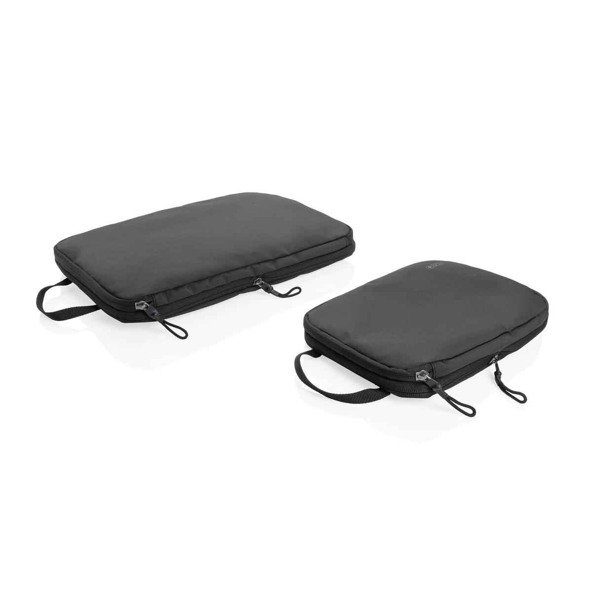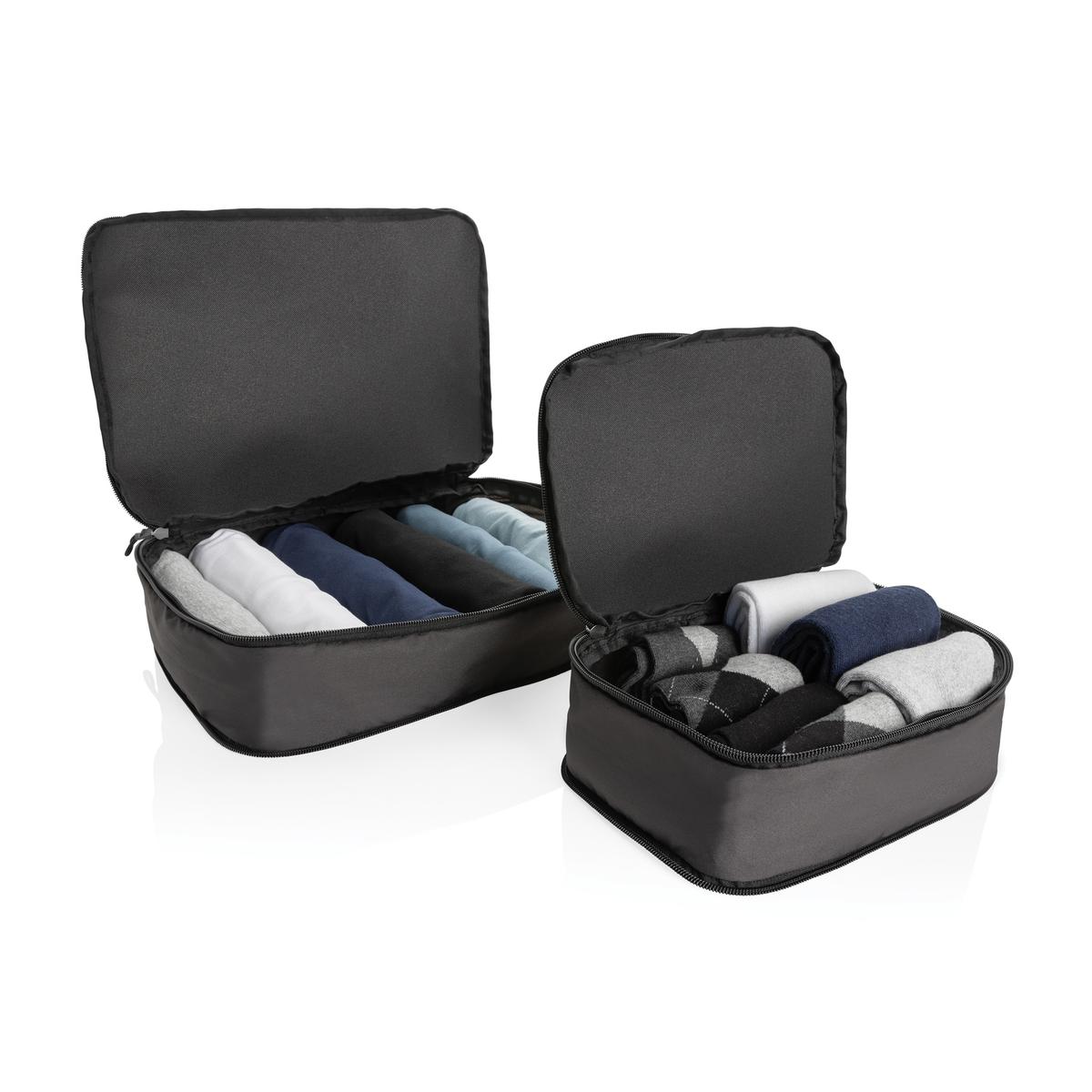 Set de 2 housses de rangement, fabriqués en 100% RPET, qui peuvent s'étendre et se comprimer pour optimiser l'espace d'emballage, peut vous aider à faire vos valises de manière plus efficace et à rester organisé. Le petit cube mesure L25*L18*H10 cm et a un volume de 4,5 litres. Le grand cube mesure L36*L25*10 cm et a un volume de 9L. Taille à plat 3cm et expansion jusqu'à 10cm. Avec le traceur AWARE™ qui valide l'utilisation authentique de polyester recyclé.