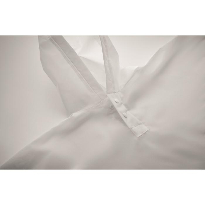 Vêtement de pluie en PEVA pour enfants (2-5 ans) avec capuche. Fermeture par bouton-pression.