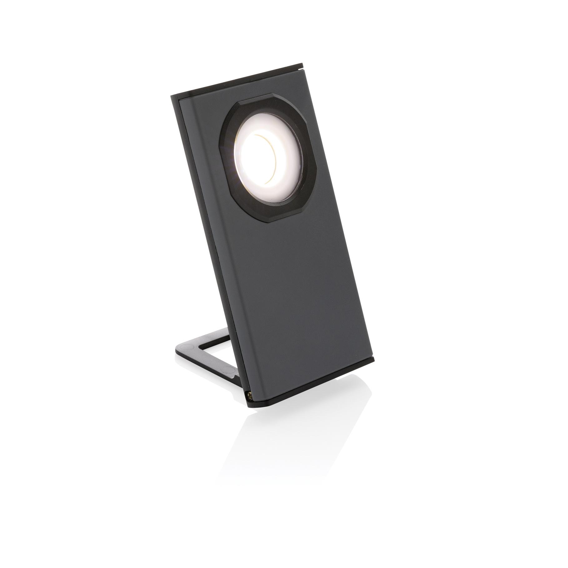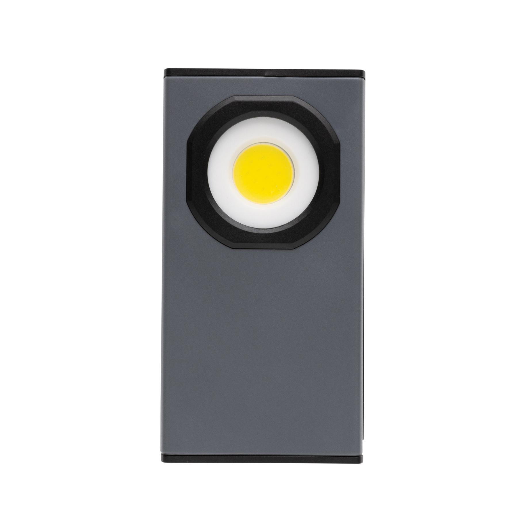 Lampe de travail de poche avec COB super lumineuse fabriquée en plastique ABS recyclé certifié RCS. Contenu recyclé total : 36% sur la base du poids total de l'article. La certification RCS garantit une chaîne d'approvisionnement entièrement certifiée pour les matériaux recyclés. La lampe de travail utilise une batterie au lithium 900 mAh rechargeable de qualité A. Il n'est donc pas nécessaire de remplacer les piles. Il suffit de la recharger via une prise USB. La lampe de travail est équipée d'une lampe COB de 260 lumens. Avec 2 modes : COB et COB 50%. Avec aimant à l'arrière. Fonction de support. Port de type C pour la recharge. Durée de fonctionnement avec une seule charge : 3 heures.