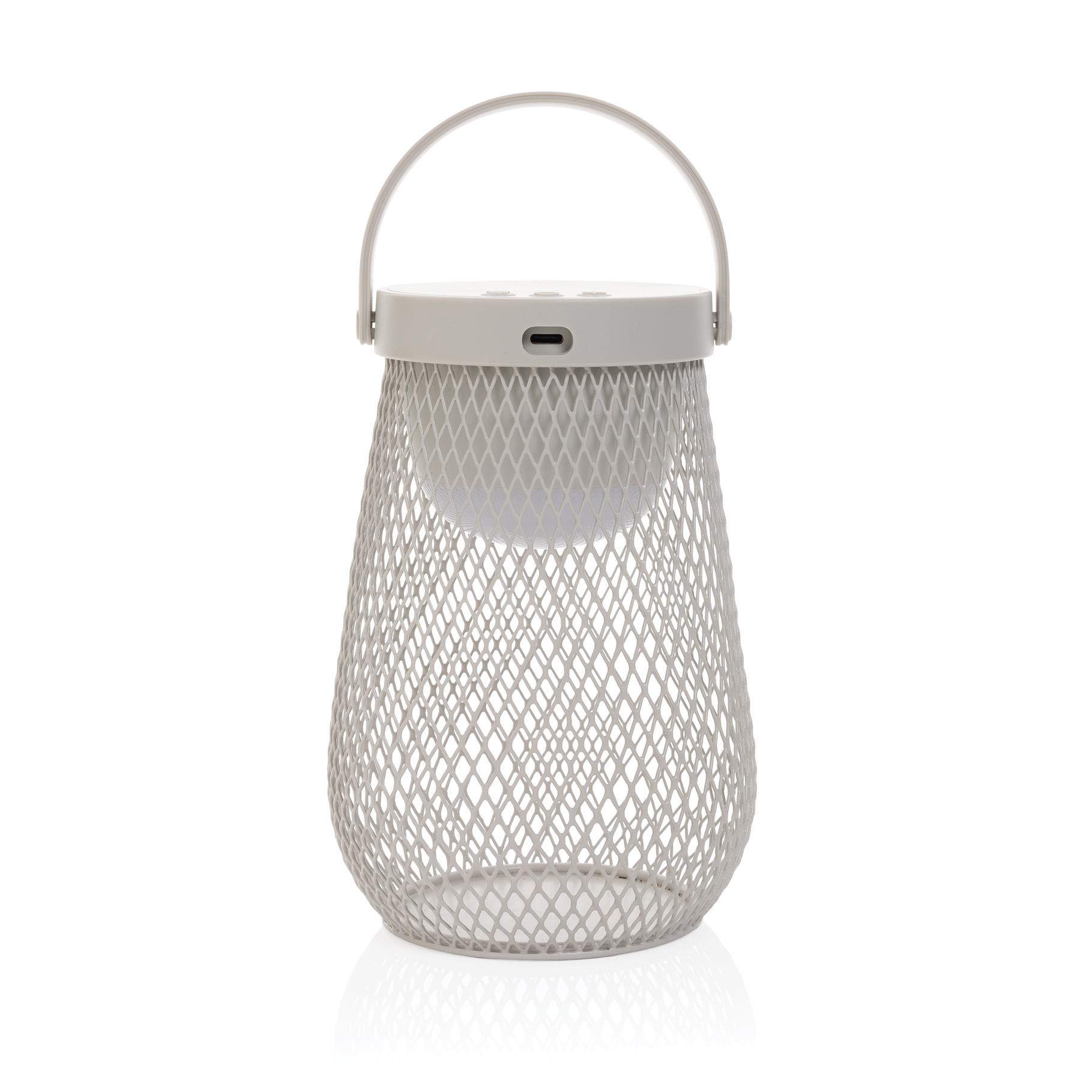Lampe de table étanche IPX 4 et rechargeable par USB fabriquée en ABS recyclé RCS et du fer recyclé en RCS. Cette lampe trouvera sa place aussi bien sur votre bureau que dans votre salon. Contenu recyclé total : 23% sur la base du poids total de l'article. La certification RCS garantit une chaîne d'approvisionnement entièrement certifiée pour les matériaux recyclés. La lampe de table fonctionne jusqu'à 24 heures avec une seule charge et peut être rechargée en 3 heures. Avec batterie 1200 mAh qualité A. Trois modes de luminosité. Câble de chargement Type C de 120 cm fabriqué à partir de TPE recyclé certifié RCS inclus pour chargement de la lampe. Sans PVC. Emballé dans une boîte kraft FSC mix.