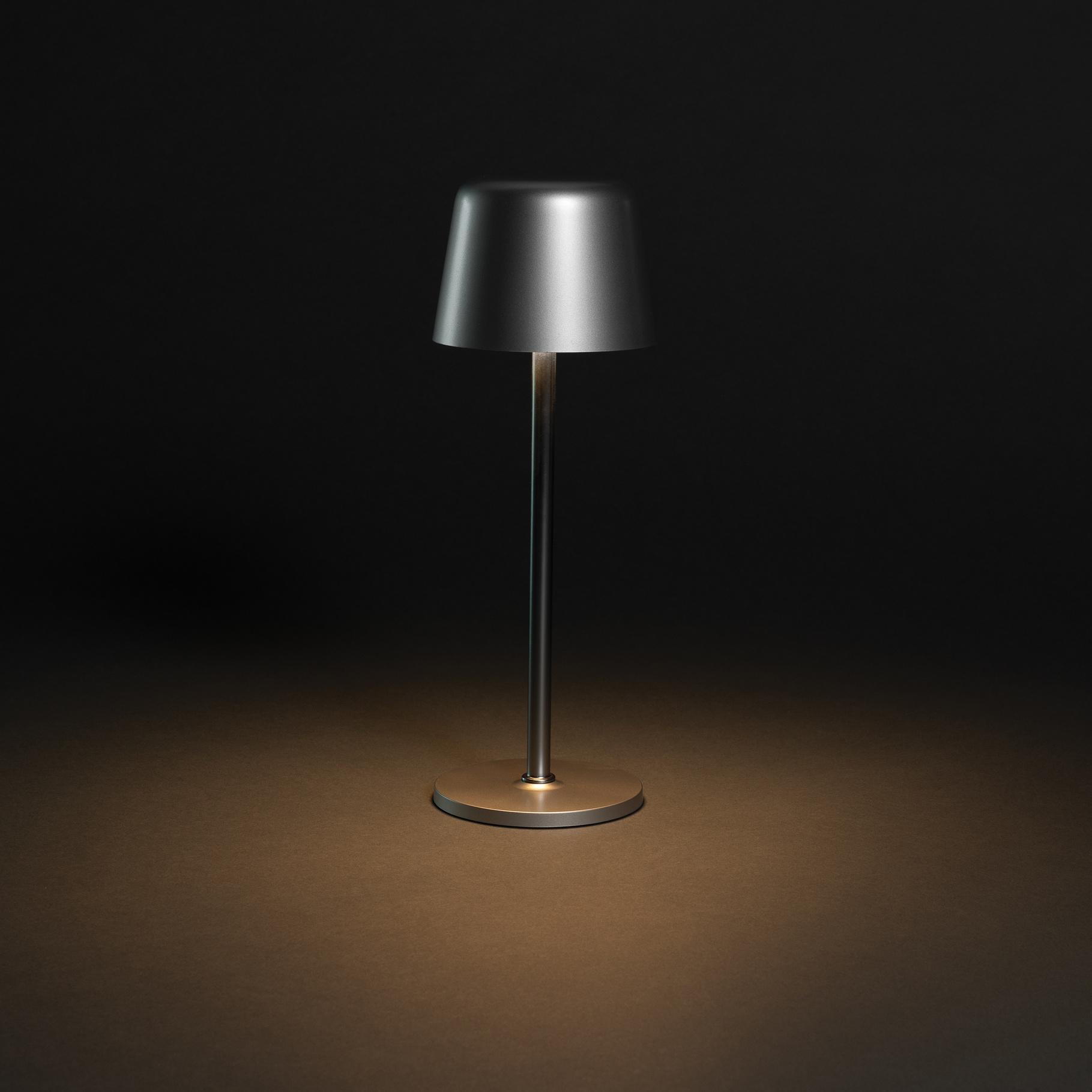 Lampe de table portable et rechargeable par USB fabriquée en ABS recyclé RCS et mât métallique. Cette lampe trouvera sa place aussi bien sur votre bureau que dans votre salon. Contenu recyclé total : 51 % sur la base du poids total de l'article. La certification RCS garantit une chaîne d'approvisionnement entièrement certifiée pour les matériaux recyclés. La lampe de table fonctionne jusqu'à 8 heures avec une seule charge et peut être rechargée en 3 heures. Avec batterie 1200 mAh qualité A incluse. Avec trois modes d'éclairage: lumière chaude, lumière blanche et neutre qui peuvent être réglés en touchant le haut de la lampe. Rechargeable via USB-C avec câble de chargement en TPE recyclé de 80 cm. Sans PVC. Emballé dans un emballage FSC mix.