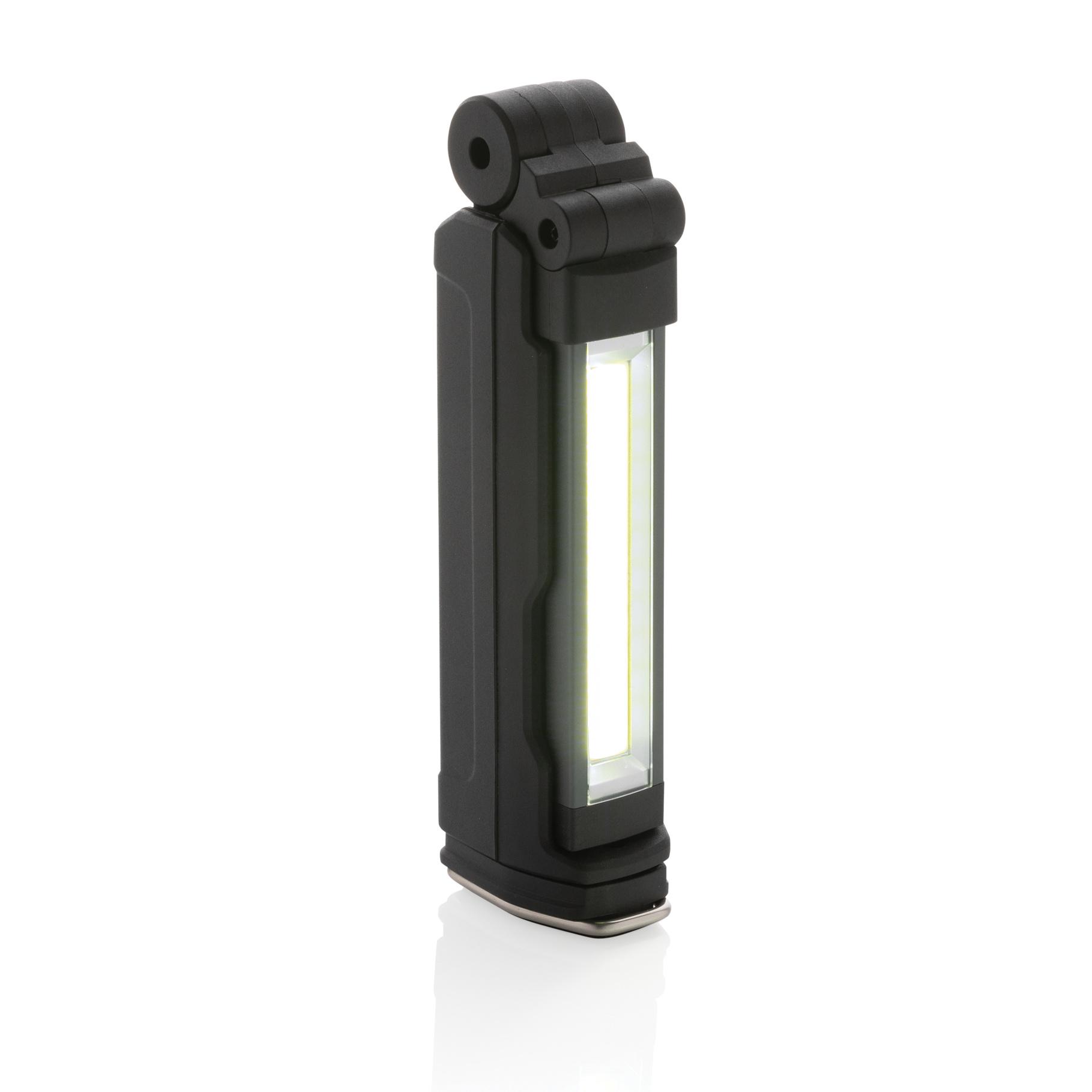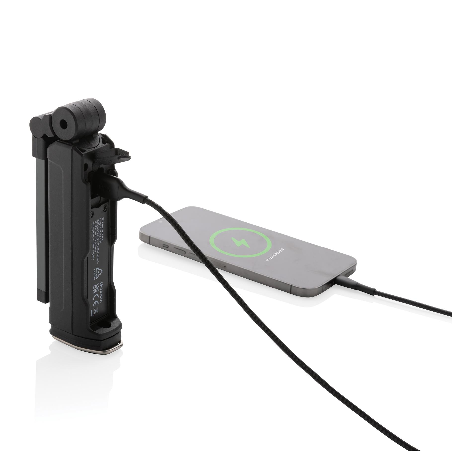 Fonctionnalité et design sont réunis dans cette lampe de travail rechargeable haute performance fabriquée en plastique ABS recyclé certifié RCS. Contenu recyclé total : 25 % sur la base du poids total de l'article. La certification RCS garantit une chaîne d'approvisionnement entièrement certifiée pour les matériaux recyclés. La lampe de travail étanche à la pluie utilise une batterie au lithium rechargeable de qualité A de 2000 mAh, qui peut être remplacée par une batterie au lithium rechargeable. Il suffit de la recharger à l'aide d'une prise USB et de la base de chargement incluse. La lampe de travail est équipée d'une lampe COB de 600 lumens et d'une lampe LED de 200 lumens. Avec 4 modes : LED, COB, COB rouge, COB clignotant d'urgence. La lampe peut être tournée à 360 degrés. Aimant et crochet en bas de l'appareil. Port de type C pour la recharge et port USB A pour charger les appareils mobiles. Durée de fonctionnement avec une seule charge : 3 heures.