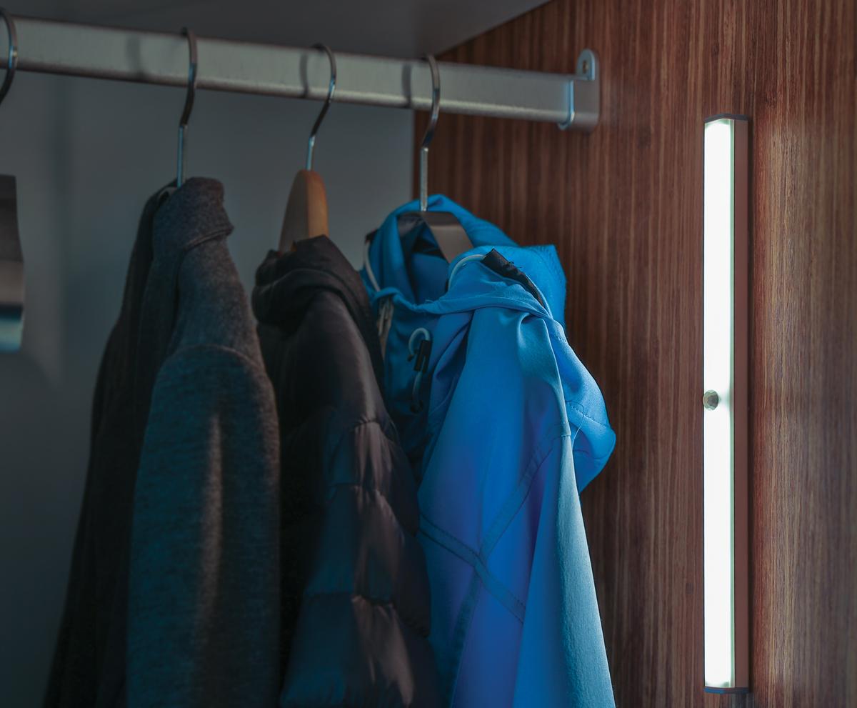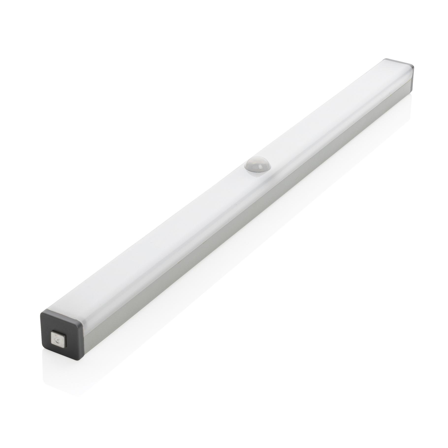 Détecteur de mouvement en aluminium avec 20 LED (30 lumens) avec une batterie 500 mAh pour une utilisation continue jusqu'à 3,5 heures et une distance de détection jusqu'à 3 mètres. Dos magnétique pour le fixer aux surfaces métalliques et avec 2 aimants autocollants inclus pour le fixer aux surfaces non magnétiques. La lumière LED s'allume lorsqu'elle détecte un mouvement et s'éteint après 35 secondes si aucun mouvement n'est plus détecté.. Rechargeable par USB avec le câble micro USB sans PVC inclus.