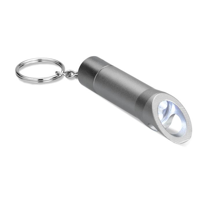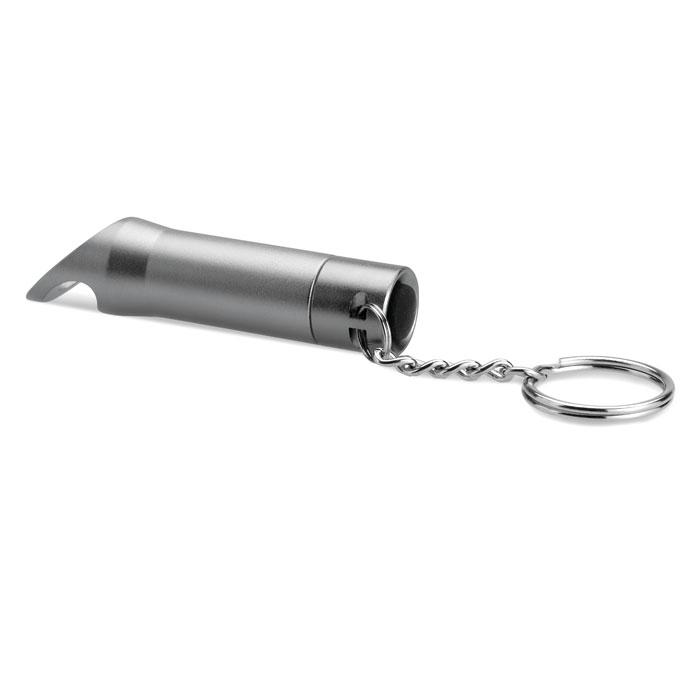 Lampe torche LED porte-clés en métal avec décapsuleur. Pile incluse.