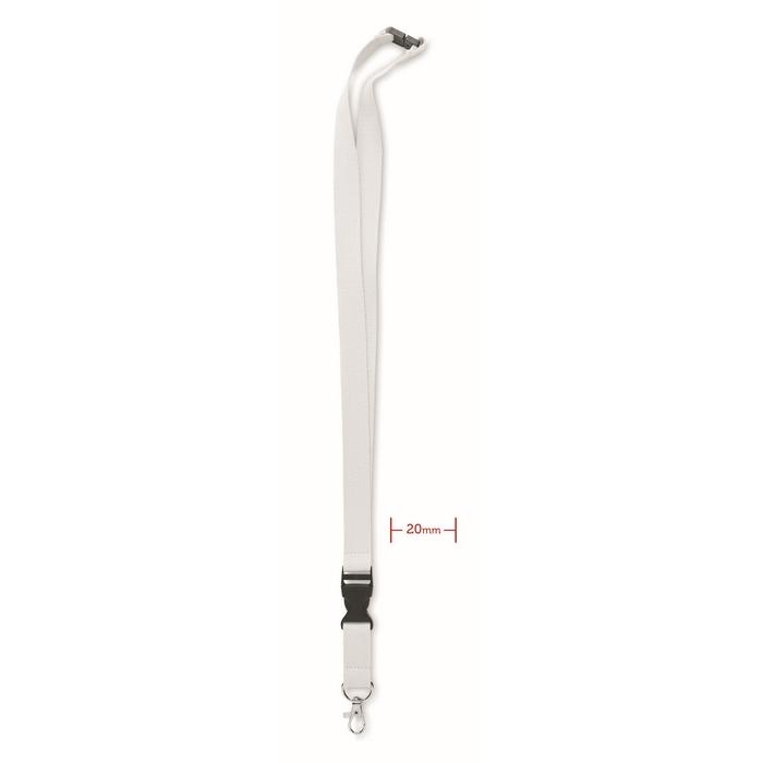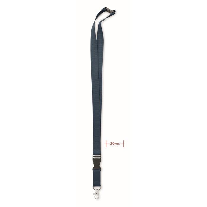 Lanyard en coton avec crochet en métal, boucle détachable et fermeture de sécurité. Largeur 20 mm.
