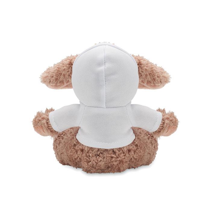 Lapin en peluche portant un pull à capuche. Idéal pour l'impression par sublimation.