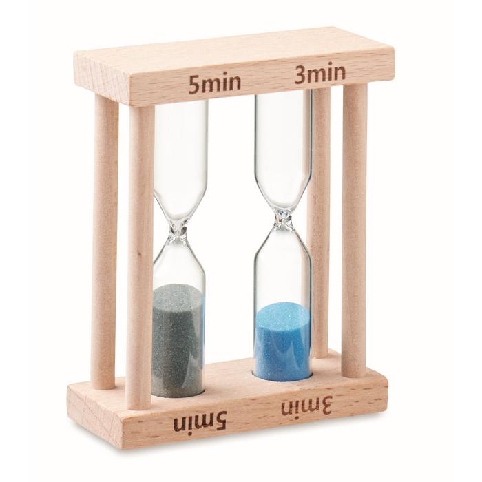 Jeu de 2 sabliers en bois avec 2 minuteurs différents (environ 3 et 5 minutes).