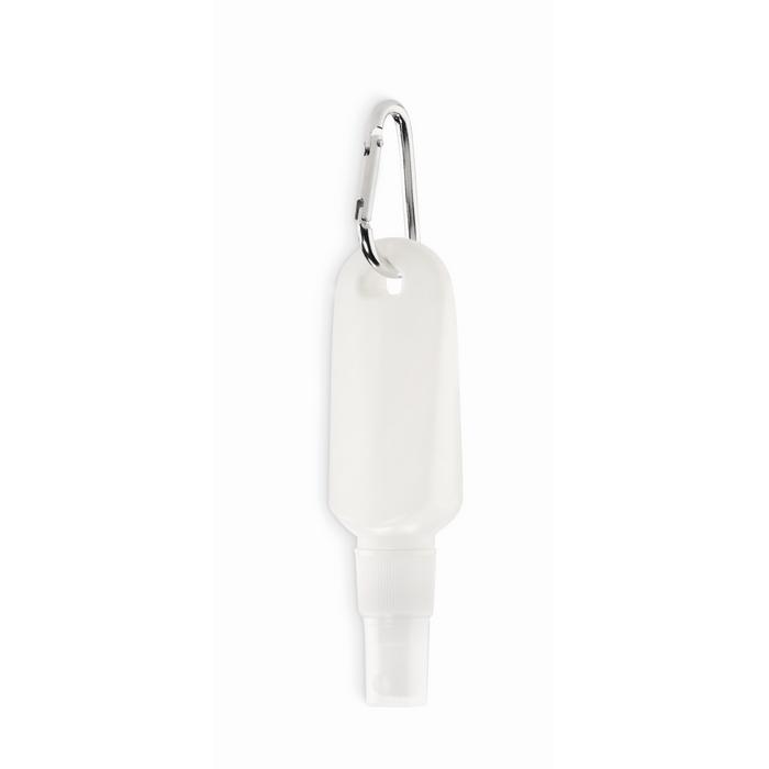 Spray solaire SPF25 avec mousqueton. Capacité : 30 ml.