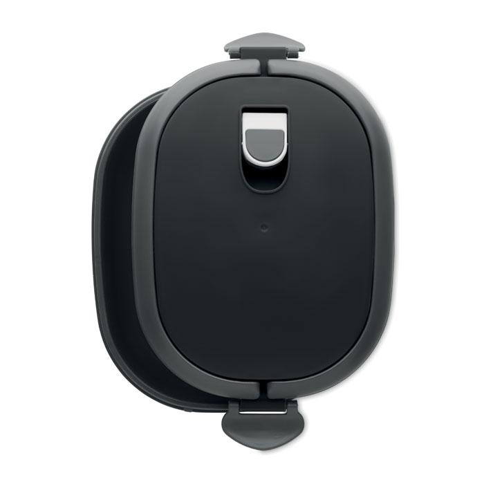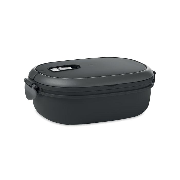Lunch box avec couvercle hermétique en PP (intérieur & extérieur). Passe au micro-ondes et au lave-vaisselle. Contenance de 1000 ml.