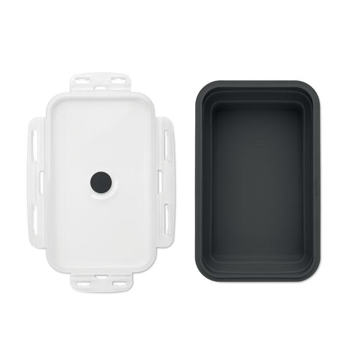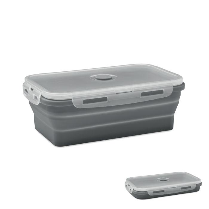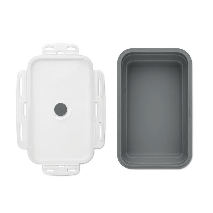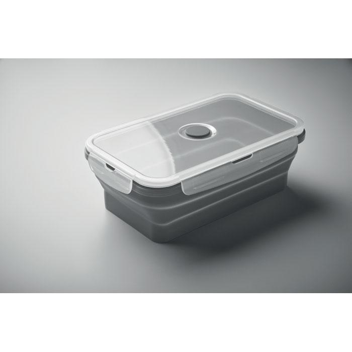 Boîte à lunch en silicone pliable avec couvercle en PP et valve en silicone. Capacité : 1200 ml.
