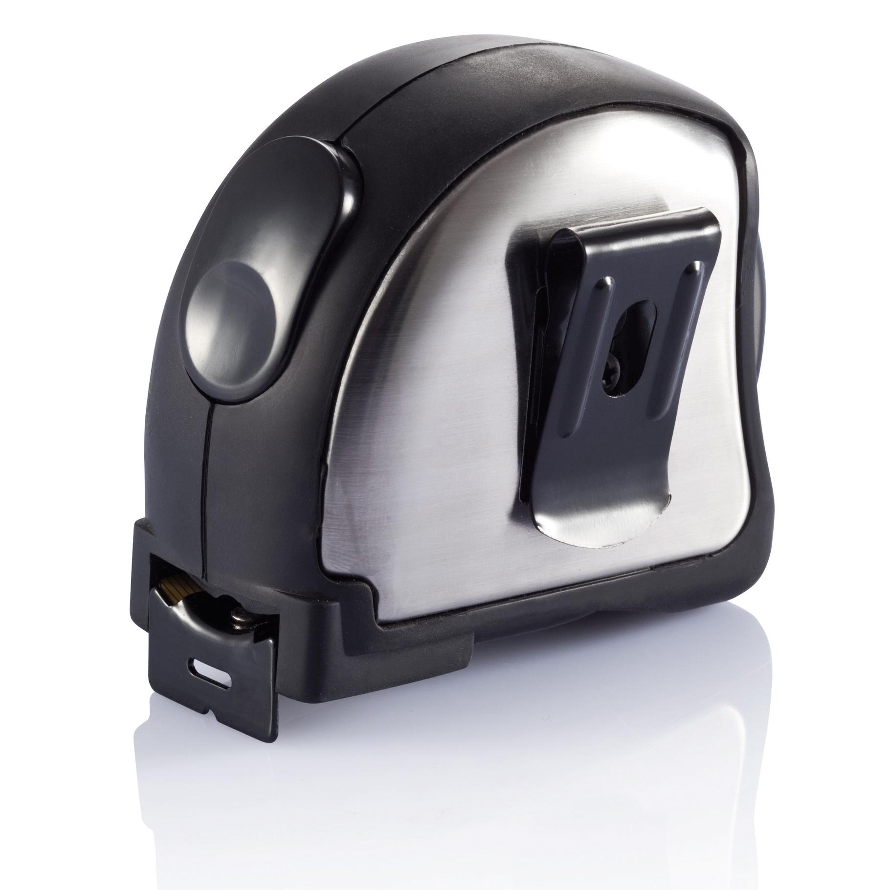 Mètre acier inoxydable 5m/25mm avec boîtier en acier inoxydable et caoutchouc, avec clip ceinture.