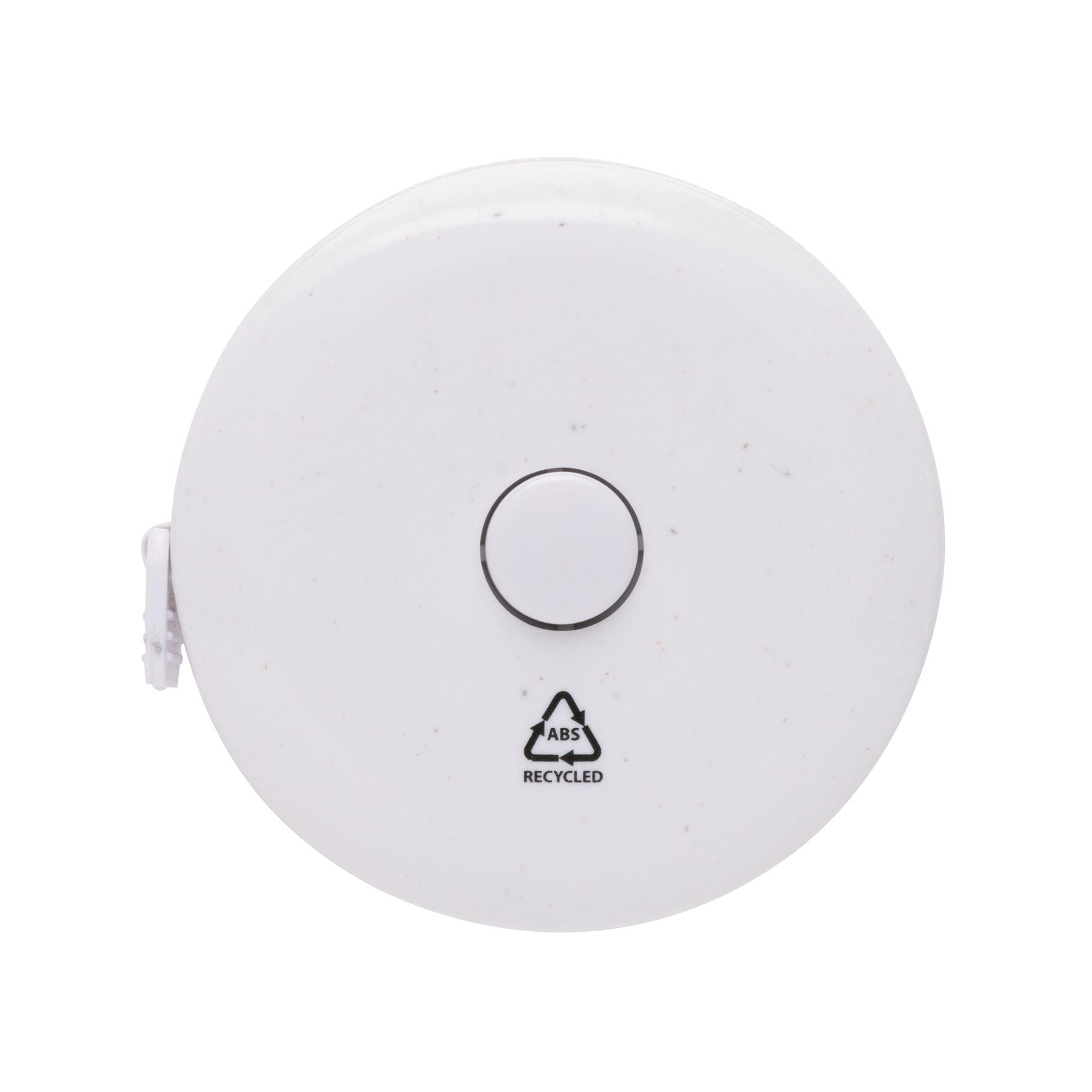 Ruban en plastique recyclé de 1,5 m/60 pouces avec bouton-poussoir de retour, pour le fitness et la mode. Le boîtier est fabriqué à partir de plastique ABS recyclé certifié RCS et de fibre de verre. Contenu recyclé total : 64 % basé sur le poids total de l'article. La certification RCS garantit une chaîne d'approvisionnement entièrement certifiée des matériaux recyclés. Le ruban a une largeur de 8 mm et est rétractable par bouton. Emballé dans un emballage FSC® mix.