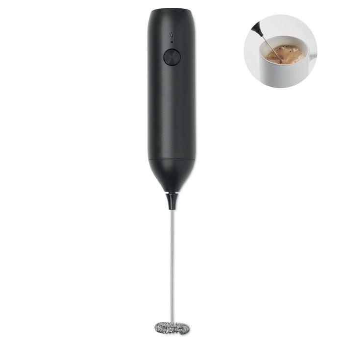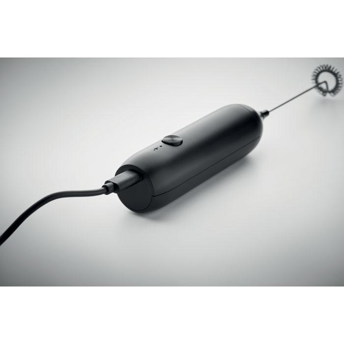 Mousseur à lait électrique manuel en ABS avec finition mate. Batterie intégrée d'une capacité de 500 mAh. Rechargeable par USB Type-C (câble inclus). Vitesse de rotation : 10 000 tr/min.