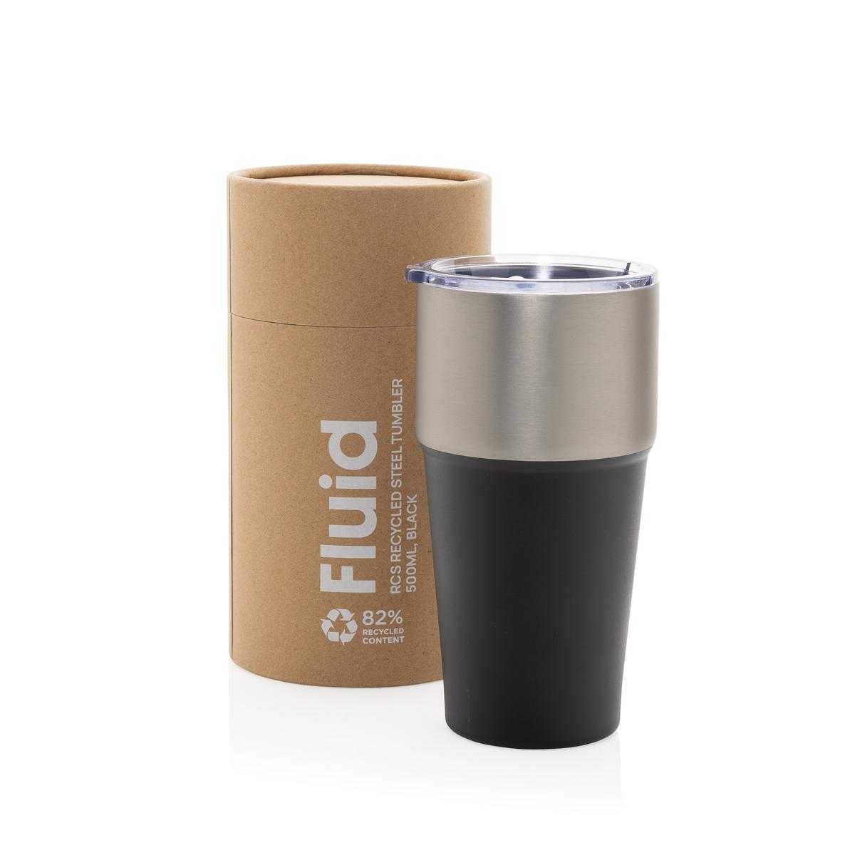 Ce Mug 500 ml présente un extérieur bicolore distinctif avec un design moitié-moitié élégant. La double paroi en acier inoxydable recyclé, fabriquée sous vide, permet de conserver les boissons fraîches jusqu'à 15 heures ou chaudes jusqu'à 5 heures. Le gobelet Fluid s'adapte à la plupart des porte-gobelets standard des voitures, ce qui le rend parfait pour une utilisation nomade. Fabriqué à partir de matériaux recyclés certifiés RCS (Recycled Claim Standard), garantissant une chaîne d'approvisionnement entièrement certifiée pour les matériaux recyclés. Sans BPA. Emballage cadeau en tube kraft certifié FSC®. Contenu recyclé total : 81% sur la base du poids total de l'article.