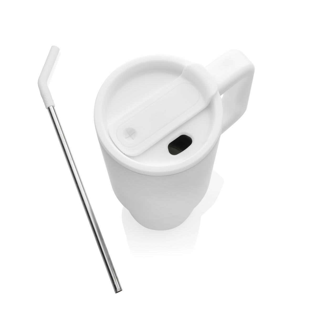 Mug 900ml à double paroi fabriqué en acier inoxydable recyclé durable, équipé d'un couvercle, d'une paille et d'un embout de paille en silicone. Polyvalent, il convient aussi bien aux boissons chaudes qu'aux boissons froides. Le couvercle à vis a une double fonction : il offre un bec verseur pratique ou la possibilité d'utiliser une paille. Découvrez sa contenance - ni trop grande, ni trop petite. Sa poignée confortable et sa base mince lui permettent de s'adapter parfaitement à la plupart des porte-gobelets, vous assurant ainsi de rester hydrate quel que soit votre activité. Pour un entretien optimal, il est recommandé de le laver à la main. Fabriqué avec RCS (Recycled Claim Standard). La certification RCS garantit une chaîne d'approvisionnement entièrement certifiée pour les matériaux recyclés. Contenu recyclé total : 70 % sur la base du poids total de l'article. Sans BPA.