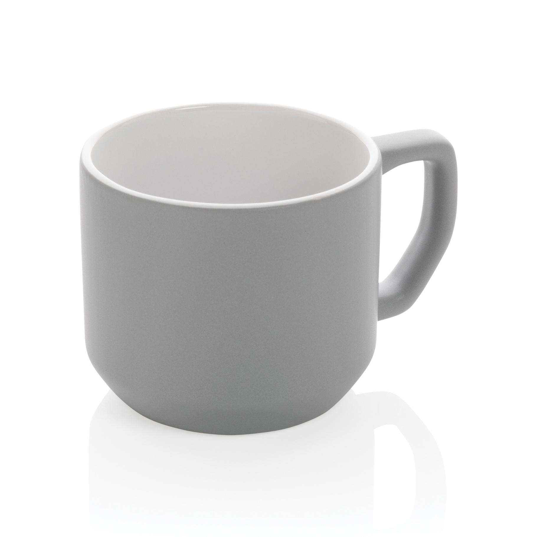 Mug 350ml en céramique au design moderne ! Le mug passe au lave-vaisselle conformément à la norme EN12875-1 (au moins 125 cycles de lavage) pour toutes les méthodes de marquage. Emballé dans une boîte cadeau.