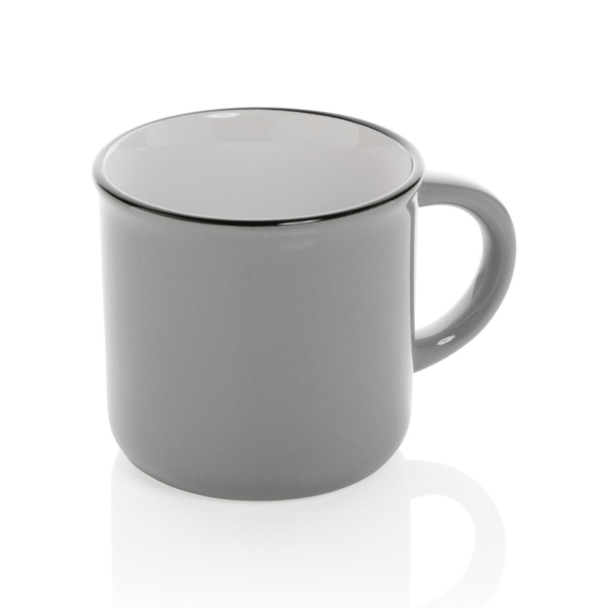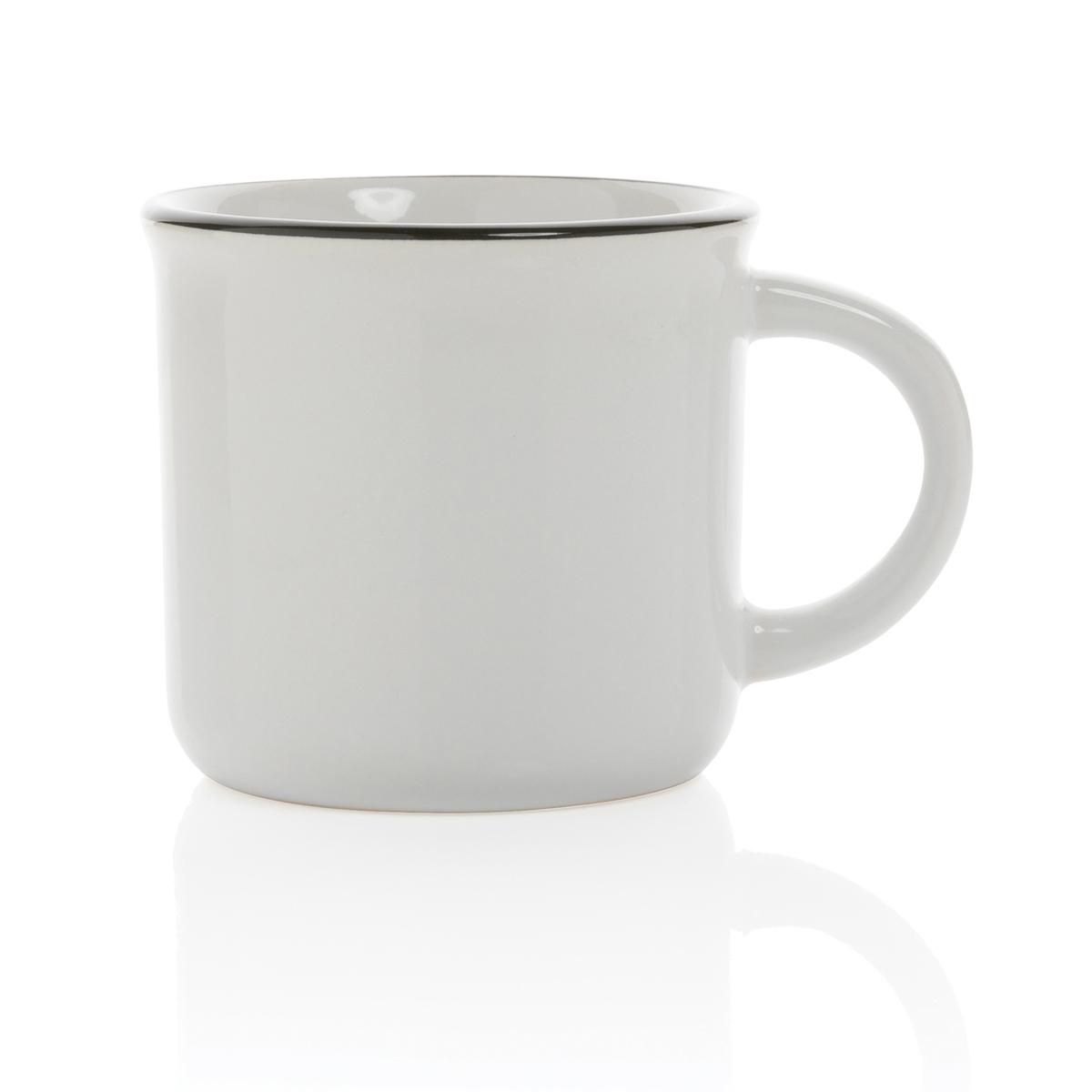 Mug 280ml en céramique au look vintage et avec une poignée incurvée pour une prise en main facile. Le mug passe au lave-vaisselle conformément à la norme EN12875-1 (au moins 125 cycles de lavage) pour toutes les méthodes de marquage. Emballé dans une boîte cadeau.
