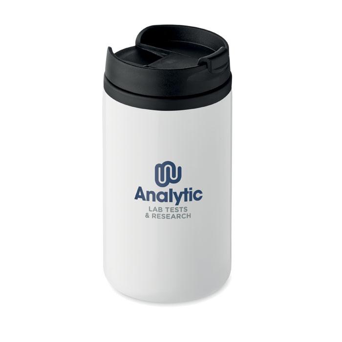 Mug anti fuite à double paroi en acier inoxydable. Intérieur PP. Contenance 250 ml. Anti fuite.