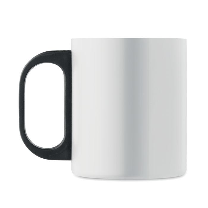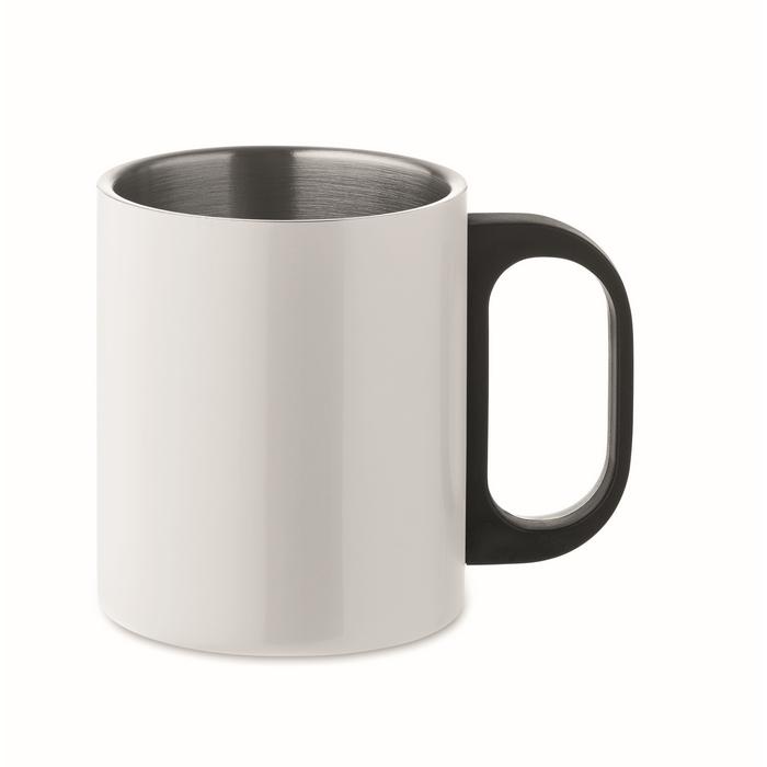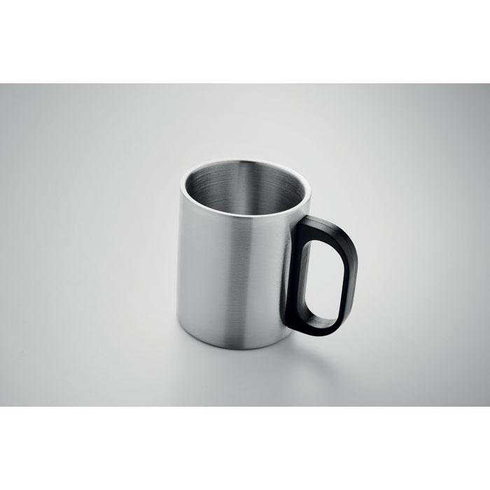 Tasse en acier inoxydable à double paroi avec poignée en PP. Capacité : 300 ml.