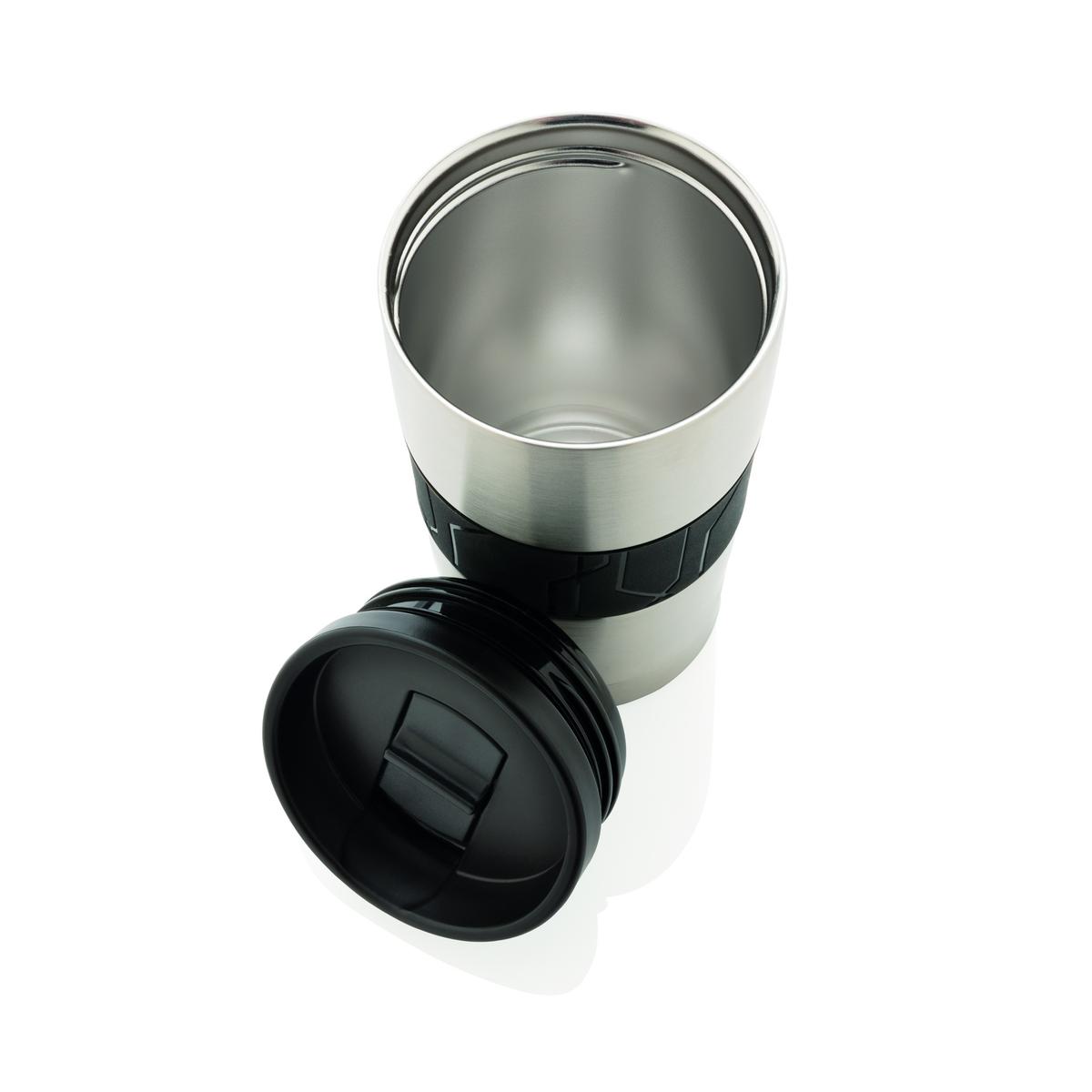 Mug 300 ml étanche à double paroi en acier inoxydable 304, avec poignée en silicone et couvercle coulissant. Passe au lave-vaisselle et convient à la plupart des machines à café. Garde les boissons chaudes jusqu'à 12h et froides jusqu'à 24h.