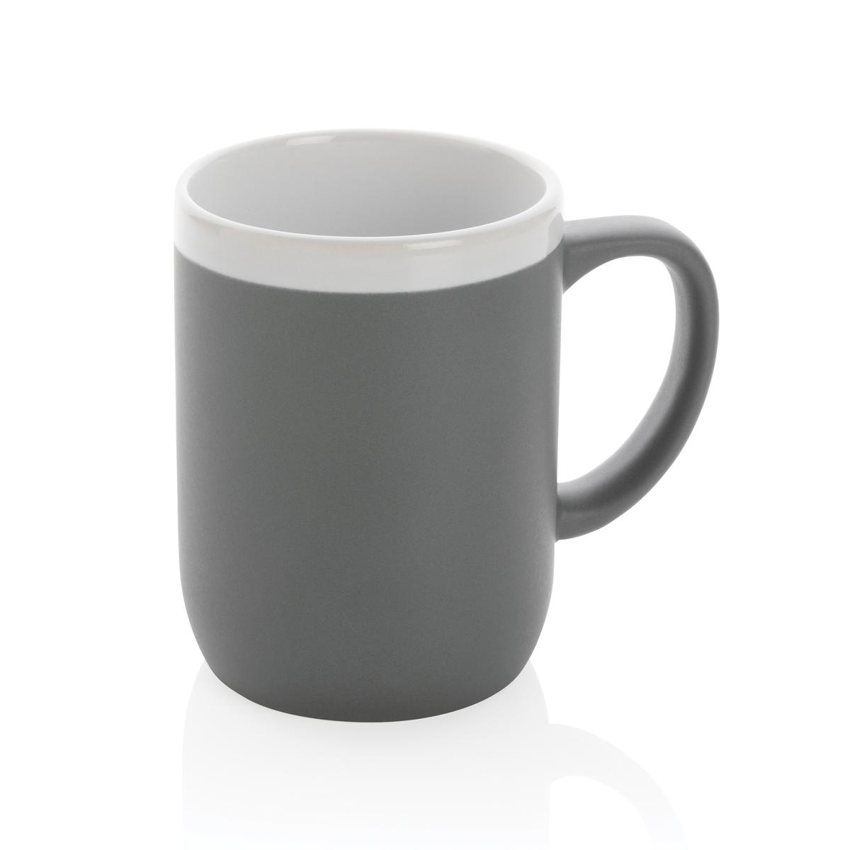 Mug 300ml en céramique avec rebord blanc. Finition intérieure brillante et une finition extérieure mate. Le mug peut être mis au lave-vaisselle et a été testé conformément à la norme EN12875-1 (au moins 125 cycles de lavage pour toutes les techniques de marquage). Emballé dans une boîte cadeau.