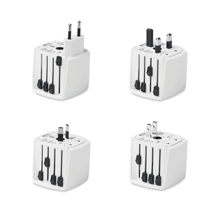 Adaptateur de Voyage universel. Fonctionne avec tous les appareils (sans mise à la terre) : smartphone, tablette, notebook, caméra. Fiches pour Europe, USA/japon, Australie/Chine. Conforme à toutes normes internationales de sécurité. Sécurité enfant.