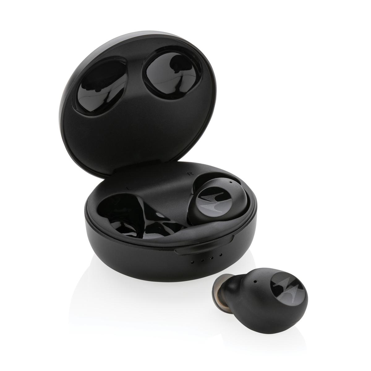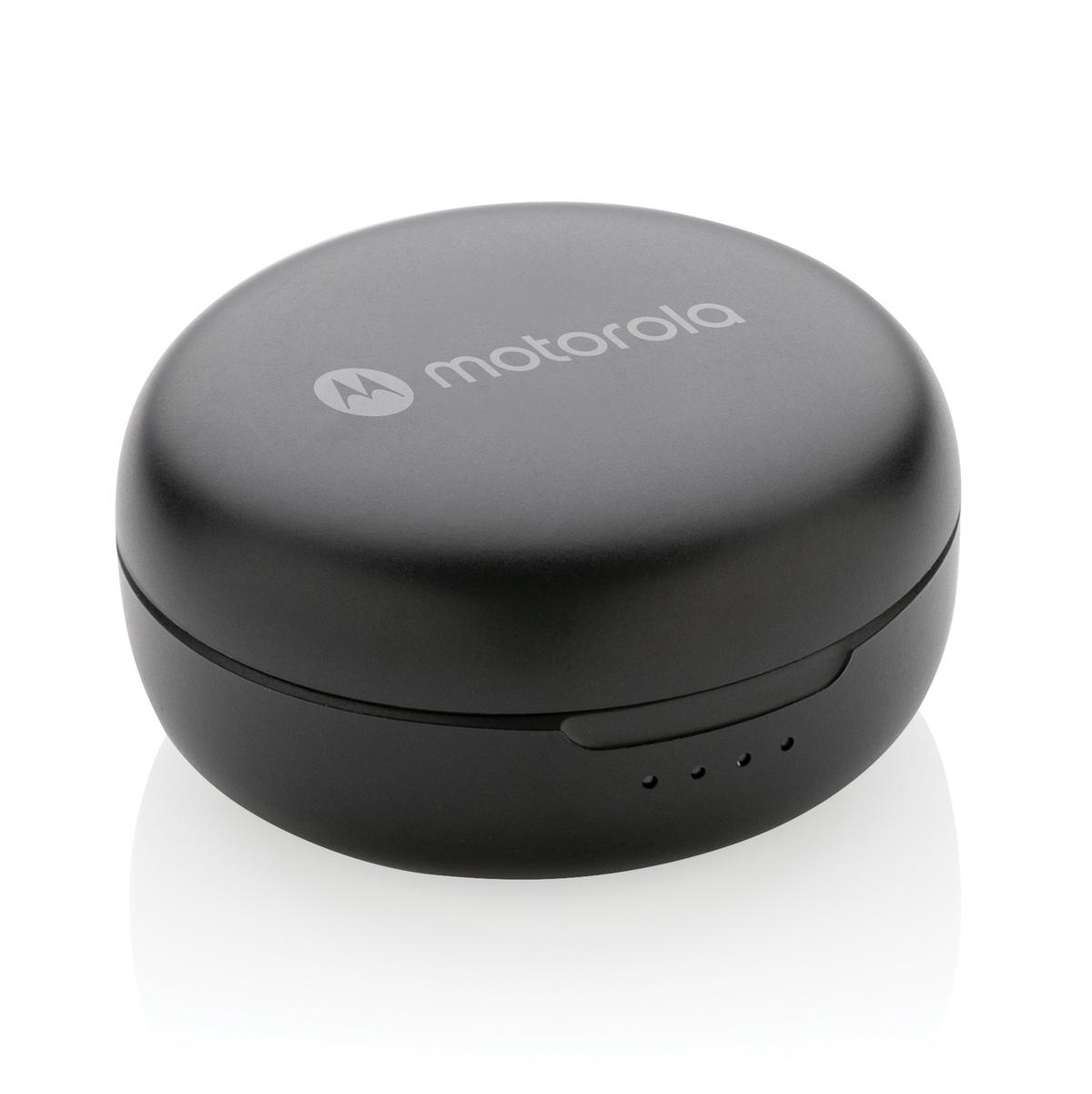 Oreillettes Motorola avec Bluetooth 2.0 TWS. Forme ergonomique et compacte. Une qualité du son incontournable. Commande tactile. 6 heures d’autonomie de la batterie avec une seule charge, 12 heures d’autonomie de la batterie avec le boîtier de charge. Étanche IPX5. Microphone pour fonction mains-libres et l'assistant vocal: ALEXA, SIRI® et Google™.