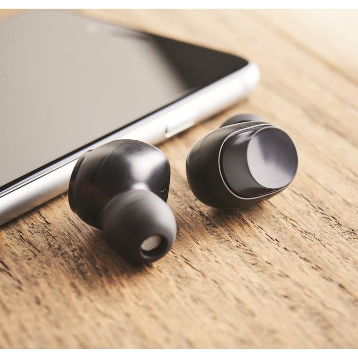 2 écouteurs True Wireless Stereo (TWS) 5.0 avec microphone et batterie 25 mAh intégrée. Durée d'écoute d'env. 3 heures. Appairage automatique. Câble de charge micro USB et station de charge de 180 mAh inclus.