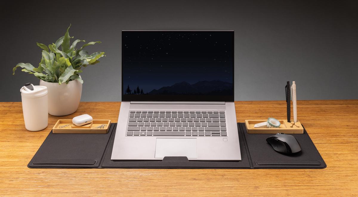 Pas de greenwashing, mais raconter une histoire vraie sur la durabilité ! Cette collection Impact est fabriquée avec le traceur AWARE™. Avec AWARE™, l'utilisation de véritables tissus recyclés et les allégations d'impact de réduction de l'eau sont garanties, en utilisant le traceur physique disruptif AWARE et la technologie de la chaîne de blocs. Économisez de l'eau et utilisez des tissus authentiquement recyclés. Si vous choisissez cet article, vous économisez 6,6 litres d'eau et 11 bouteilles en plastique ont été réutilisées. L'accent étant mis sur l'eau, 2 % des recettes de chaque produit Impact vendu seront reversés à Water.org. Gardez tous vos essentiels de travail organisés avec l'organisateur de bureau pliable A5 AWARE™ RPET. À l'intérieur de l'organisateur, vous trouverez un chargeur sans fil 10W en bambou avec des porte-stylos et un support d'ordinateur portable triplement pliable facile ( max 17"). Intérieur et extérieur 100% polyester recyclé avec traceur AWARE™. Sans PVC. C